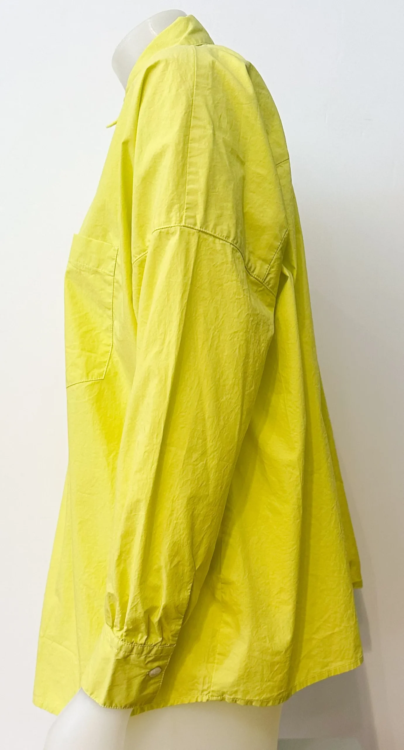 leicht oversize geschnittenHemdblusenkragenüberschnittene SchulterManschettenärmelKnopfleisteeine BrusttascheFarbe Lim…