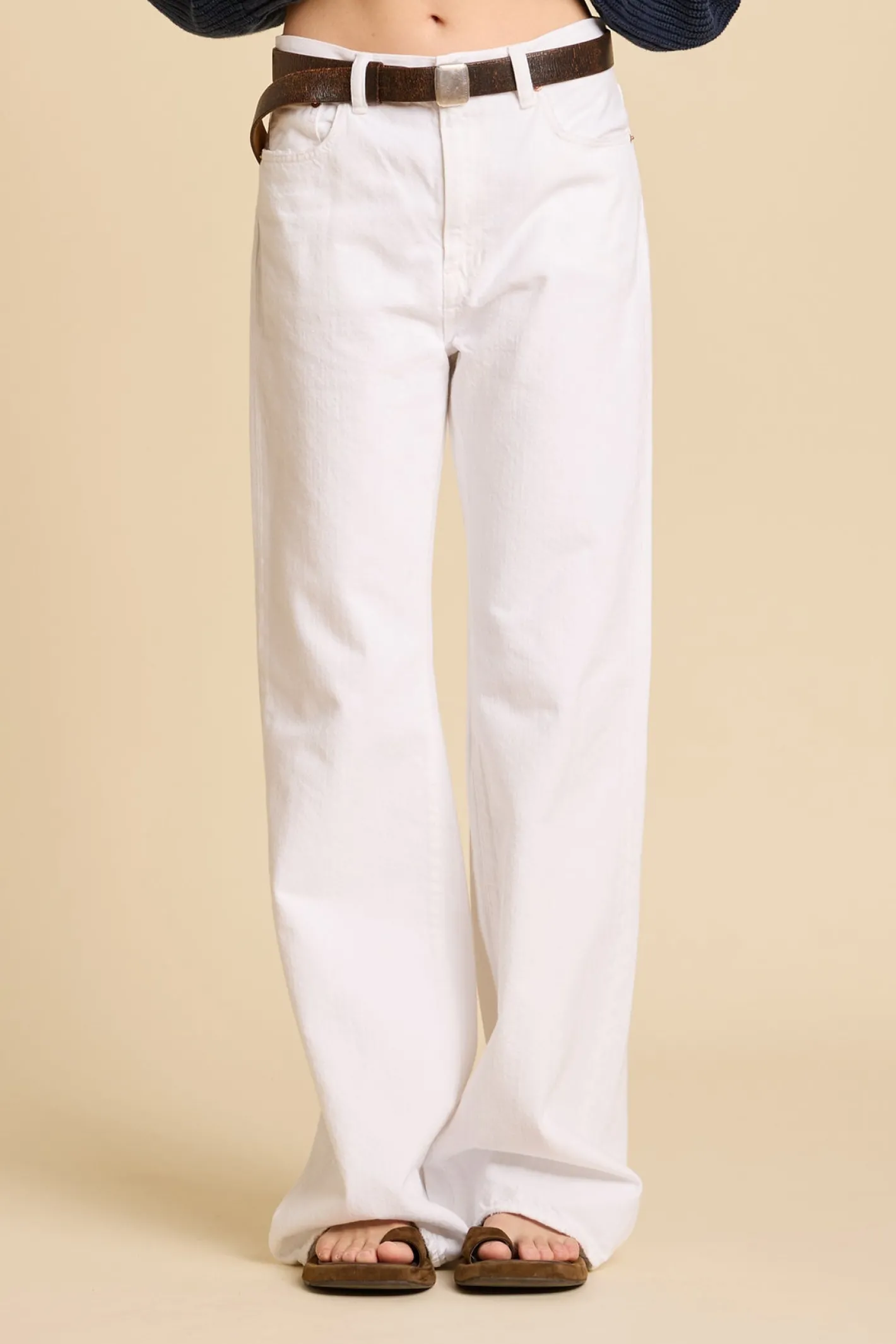 High Riseschmaler Oberschenkelnach unten leicht flareFarbe White Wash100% Baumwolle
