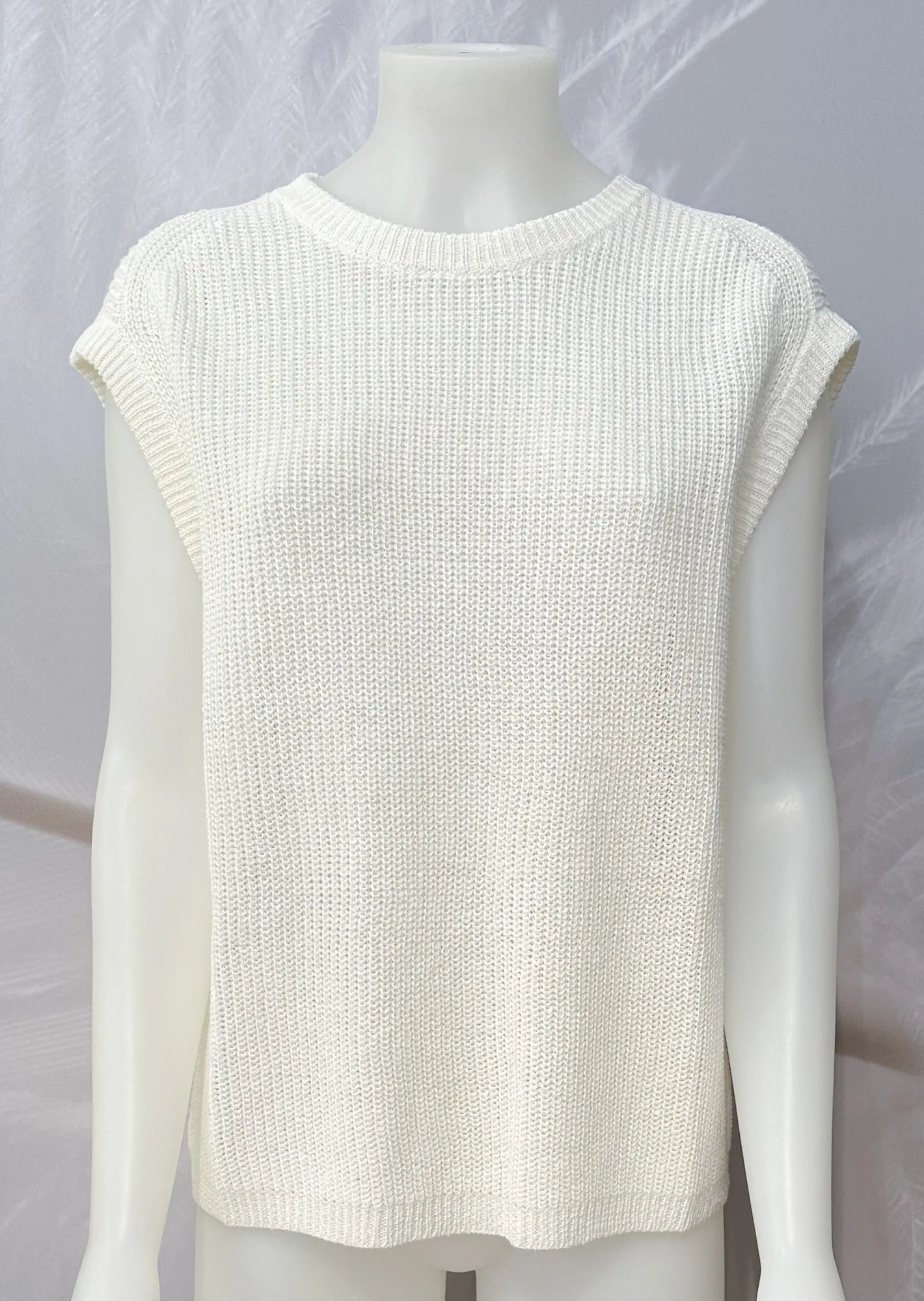 Ohne Armüberschnittene SchulterRipp Bündchenhoher Rundhals Ausschnittmit kleinen PaillettenFarbe White Cloud96% Leinen…