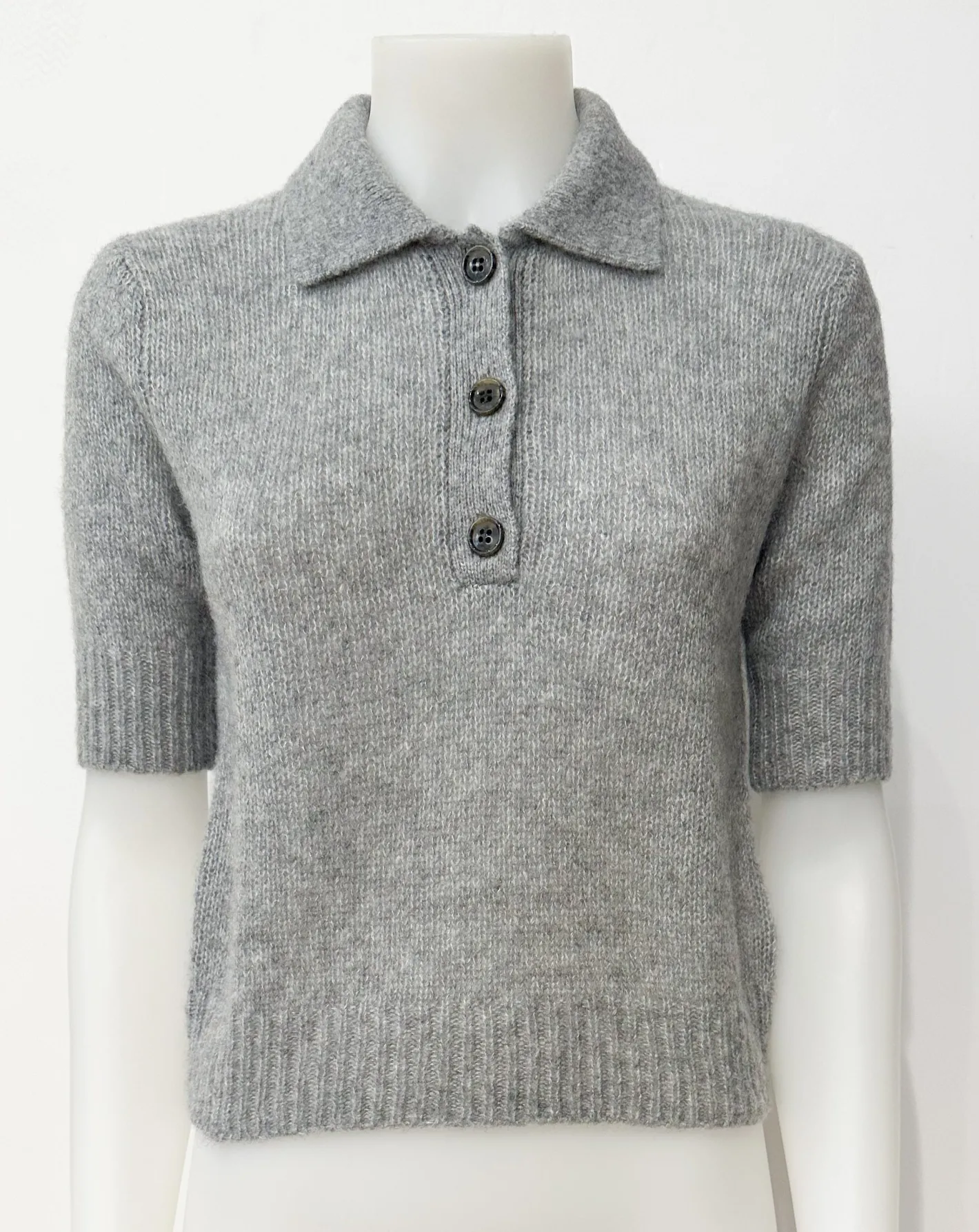 schmal, gerade geschniitenPolo KragenKnopfleisteFarbe Cloudy77% Cashmere 23% Seide