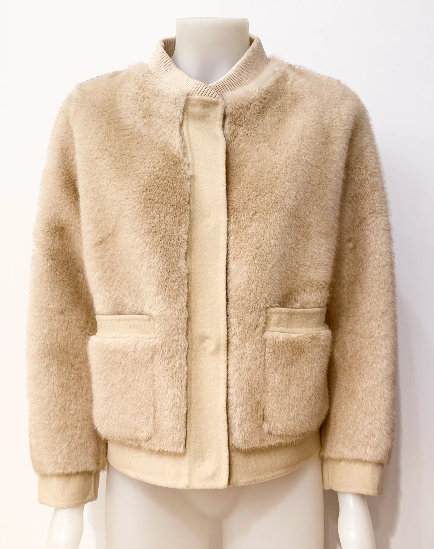 kurze BomberjackeDruckknöpfeaufgesetzte TaschenFarbe Beige100% Polyester