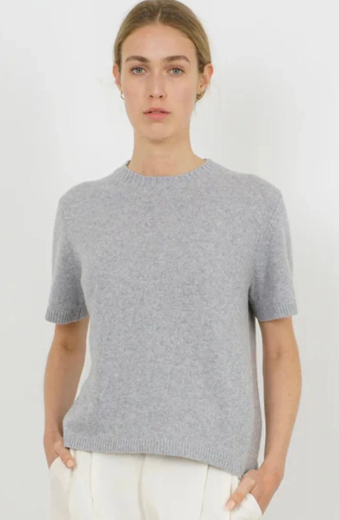 1/2 Arm Pullovergerade geschnittenRipp BündchenRundhals AusschnittFarbe Oyster70% Merino Ultrafine 30% Cashmere
