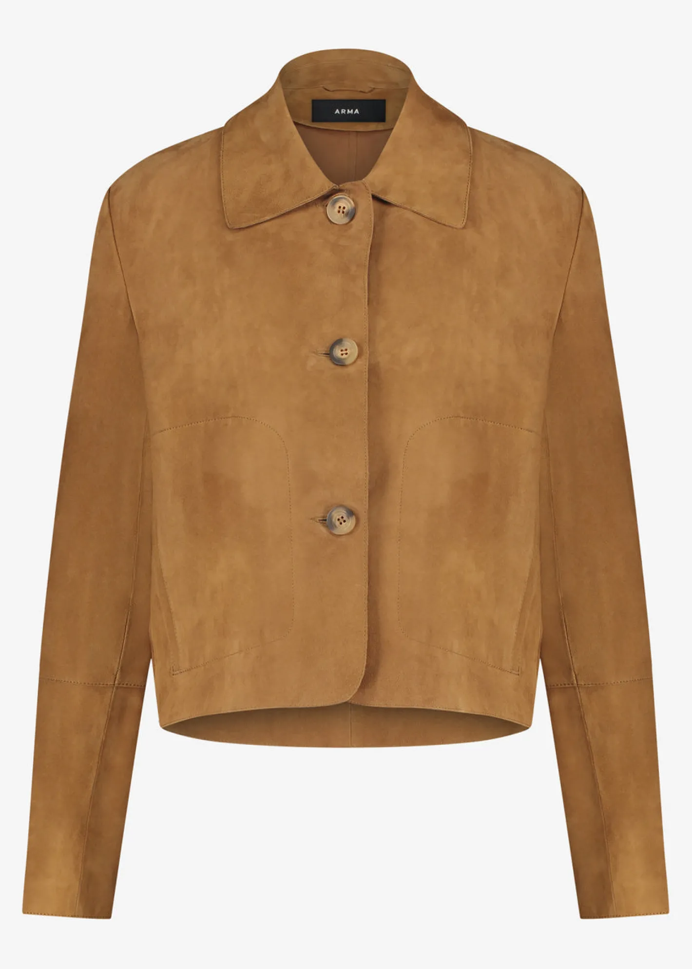 kurz und gerade geschnittenseitliche EingriffstaschenKnopfleisteungefüttertUmlegekragenFarbe Whiskey100% Lamm Velourled…