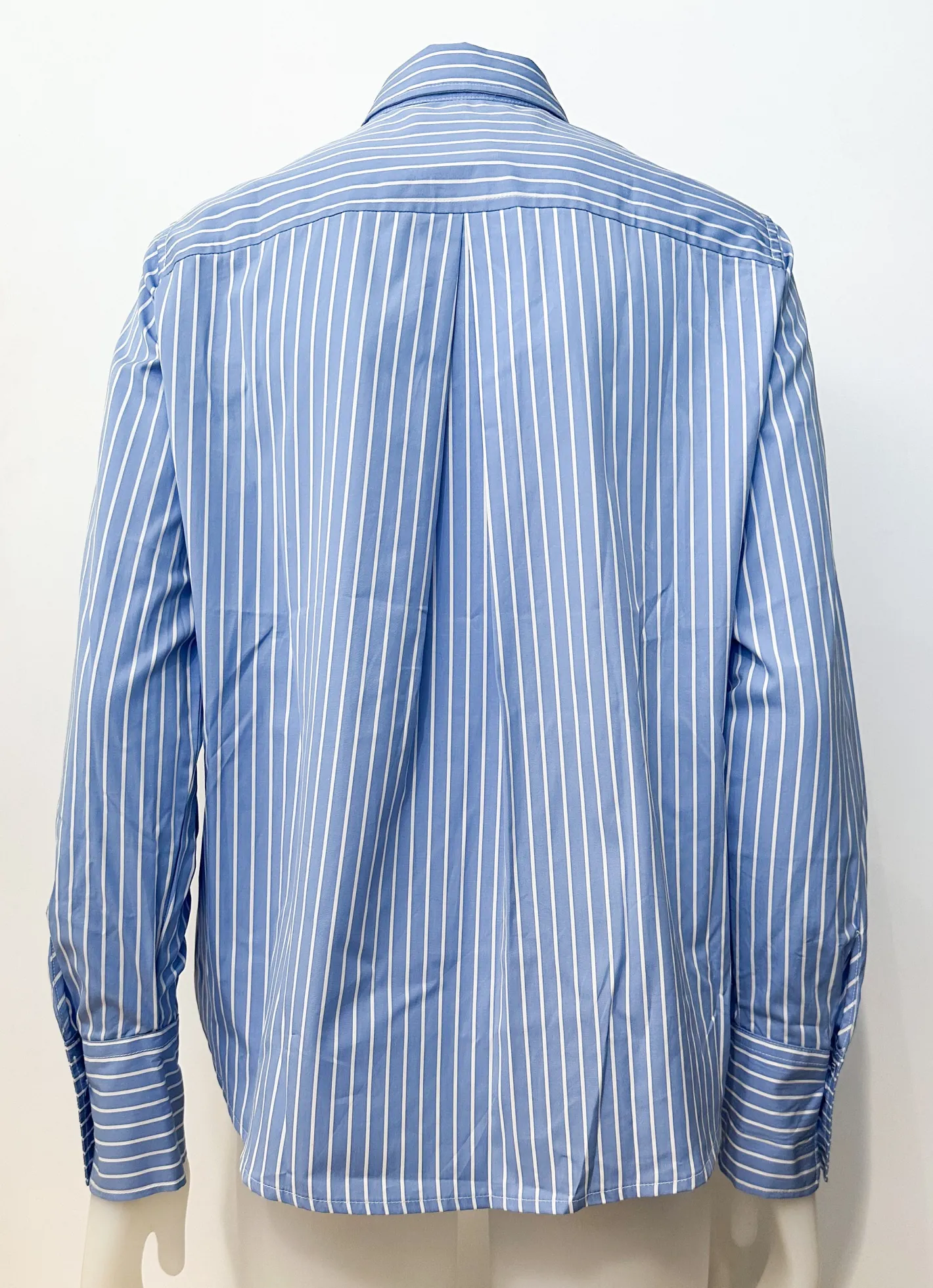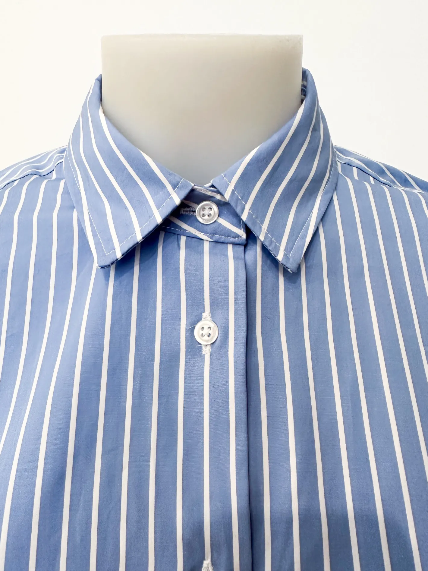 gerade geschnittenHemdblusenkragenManschettenärmelabgerundeter SaumKellerfalte hintenModell 49004 StreifenFarbe Blau We…