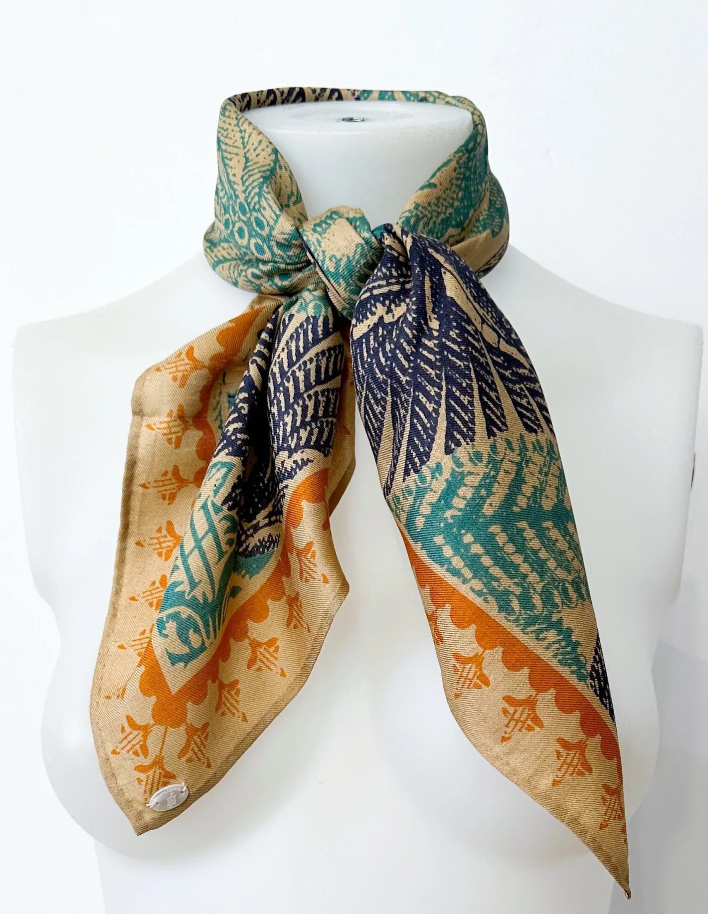 quadratisches TuchGröße 70cm x 70cm100% SeideDruck New Mala Malahandgewebt in Nepal