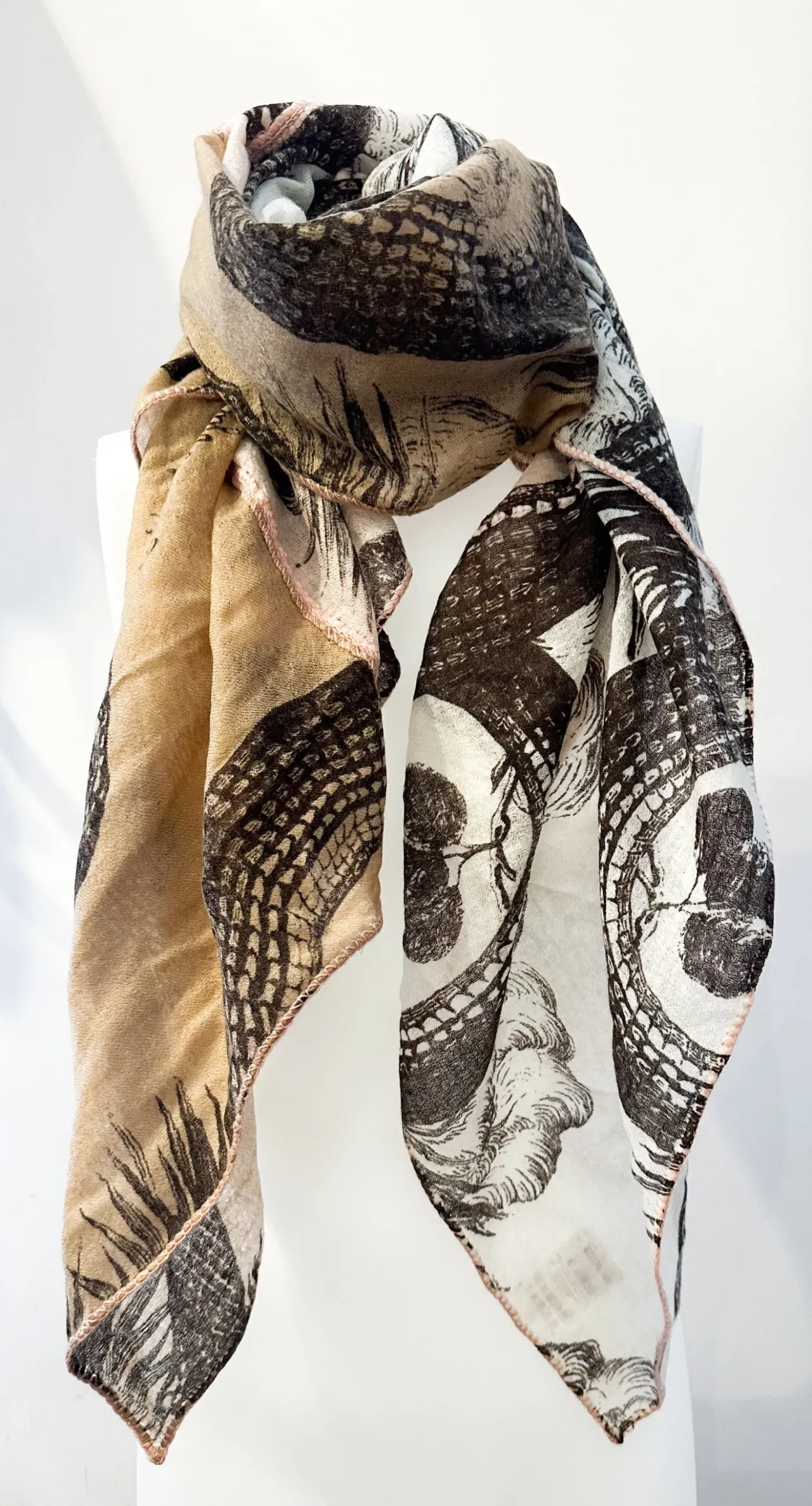 quadratisches Tuch gepatched mit ZierstrichenMuster Cheetah100% CashmereMaße ca. 125cm x 125cm