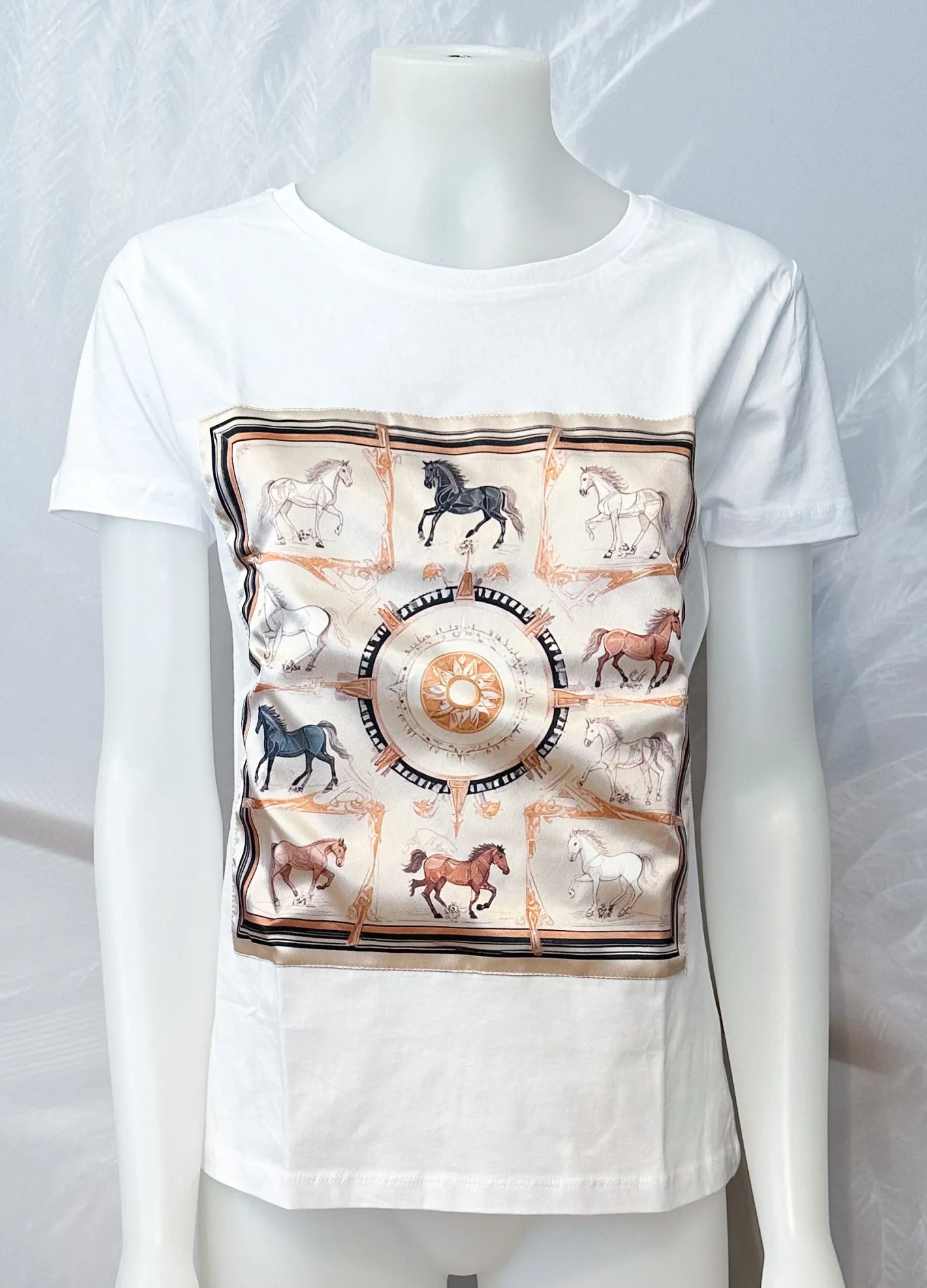 Shirt 1/2 Arm leicht tailliert geschnittenaufgestepptes Seidentuchlinks waschen, kein Trockner !Farbe B2 Horses100% Bau…