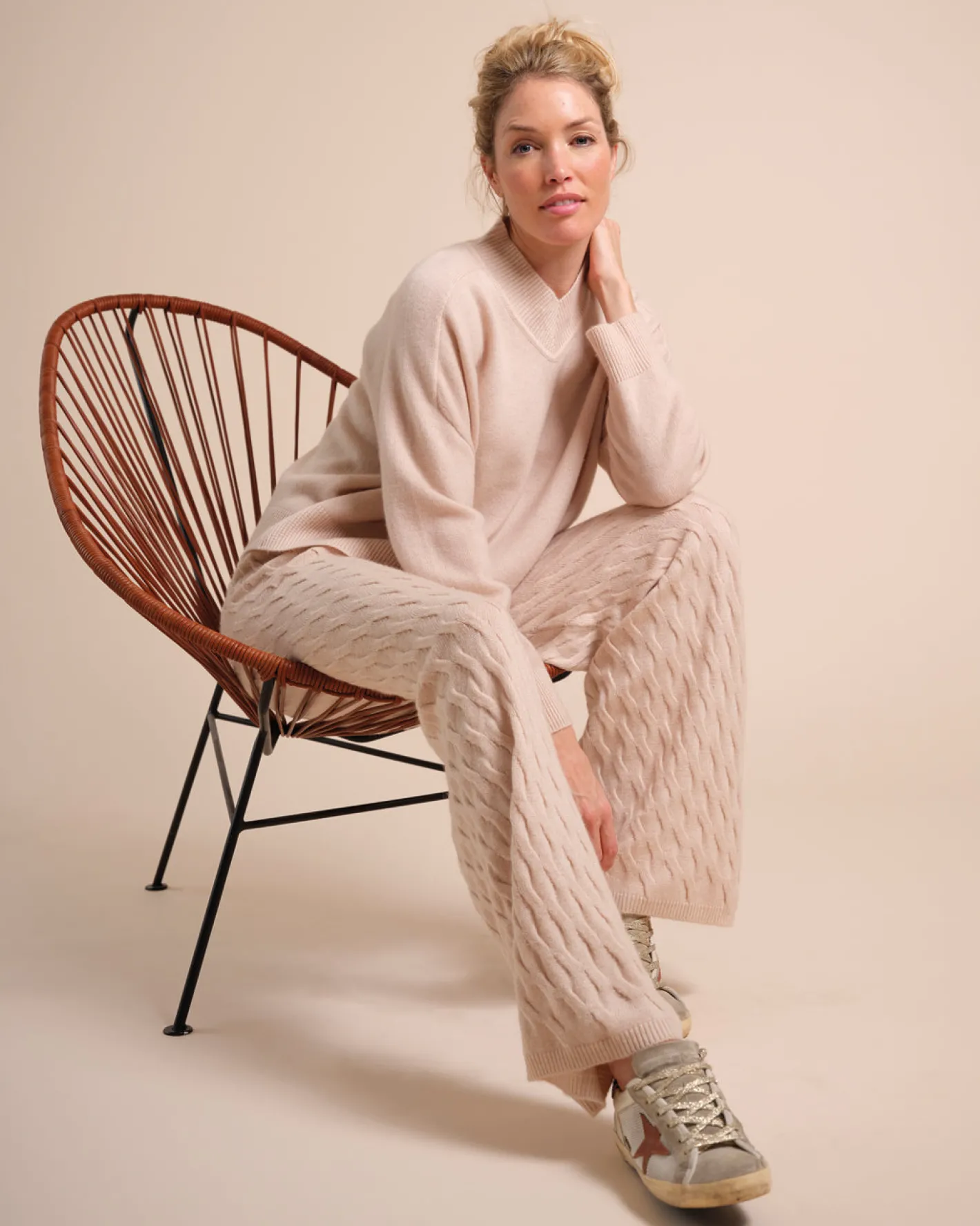 oversize geschnittenV-AusschnittRipp Bündchentief eingesetzter Armloose FitFarbe Egg Nogg/Beige100% CashmereMade in Nep…