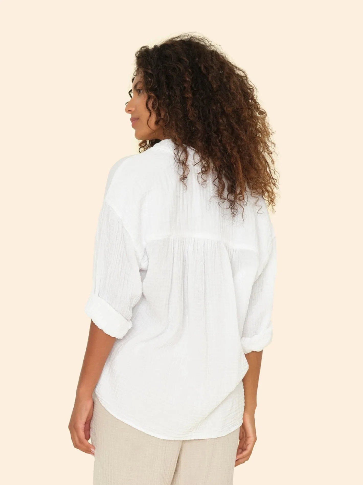 gewaschene doppelseitige Baumwoll Gazegecrinkelte Optikloose FitKnopfleisteeine BrusttascheManschettenHemdblusenkragenFa…