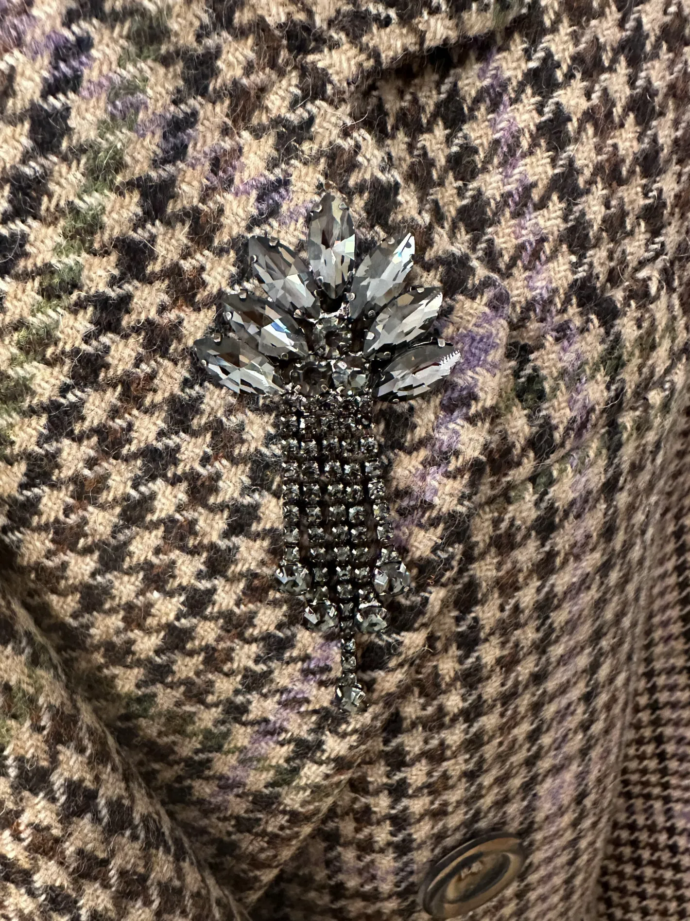 oversize Blazerzweireihig geknöpftReverskragenPattentaschenBrosche am Revershinten mit Schlitzfällt groß aus.Farbe Ka…