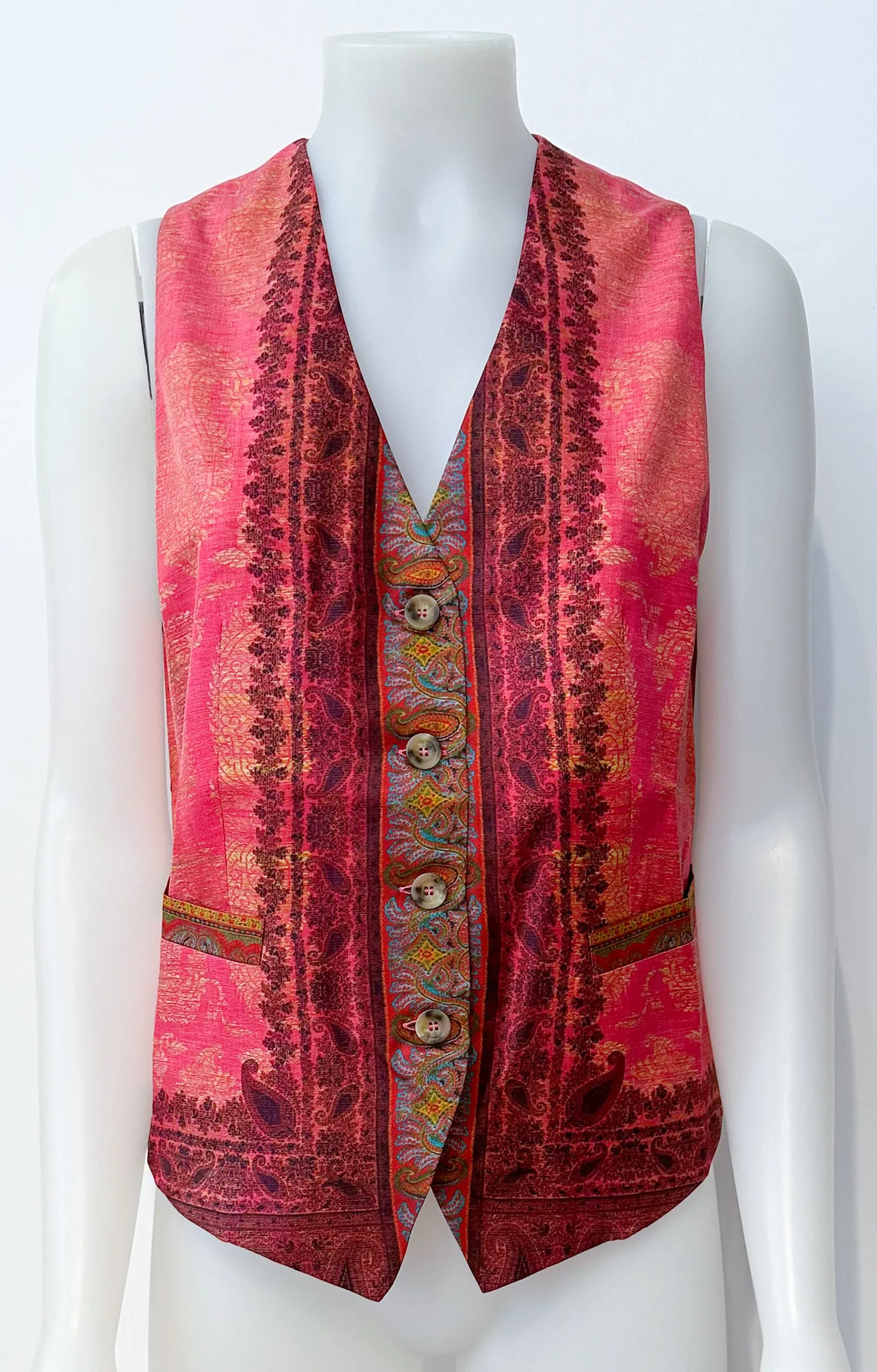 BlusenwesteV-Ausschnittkleine Taschenschmal geschnittenhinten kleiner SchlitzFarbe Pink100% Seide