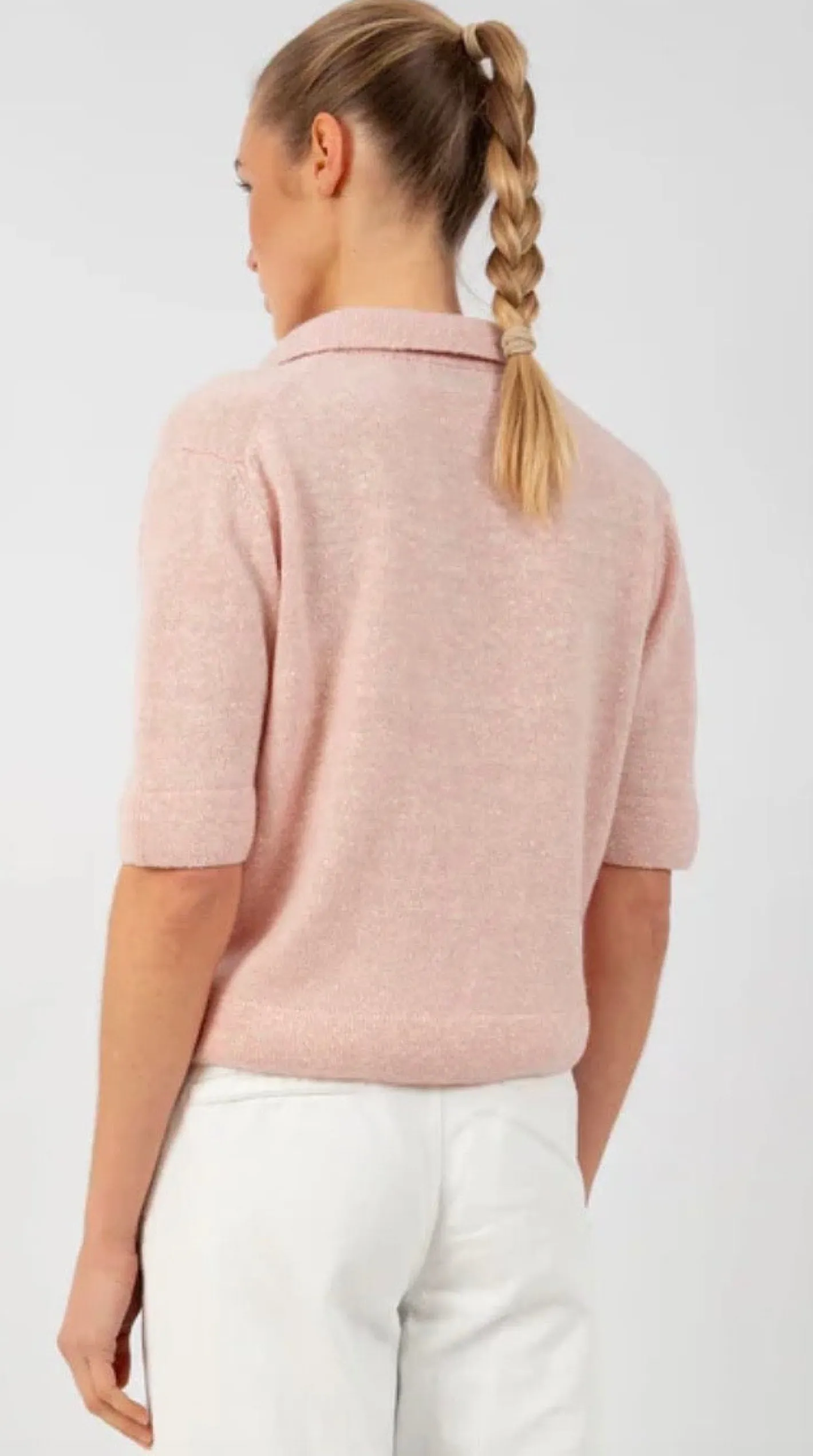 Polo Kragen1/2 Armgerade geschnittenFarbe Light Rosé67% Ultrafine Merino 33% Seide