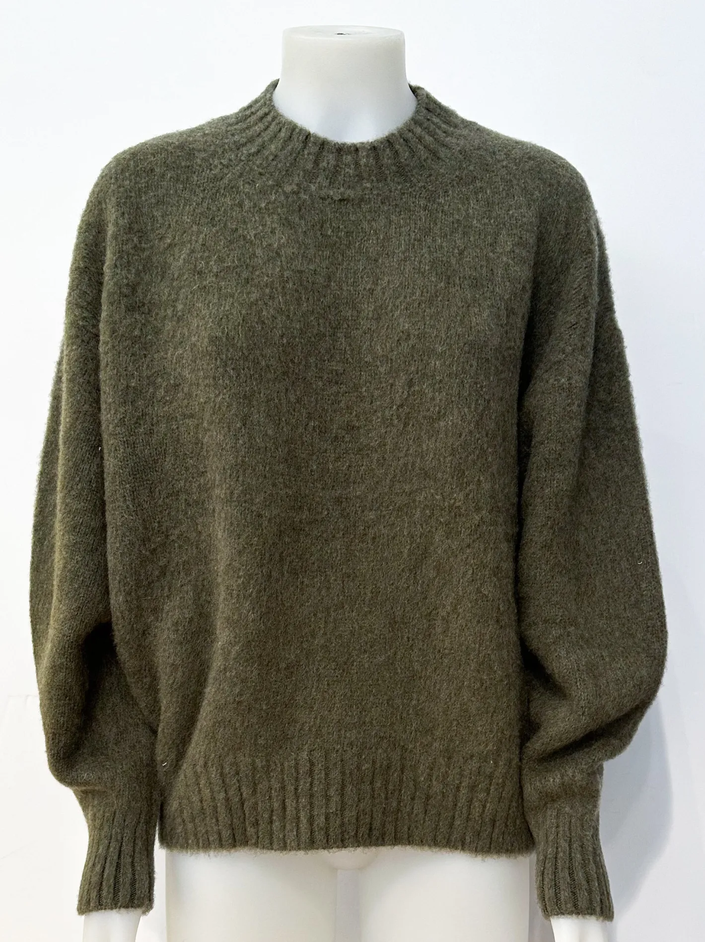 leicht oversize geschnitten, wie ein Sweaterhoher Rundhals AusschnittRipp Bündchenblusiger ÄrmelFarbe Oliv70% Extrafin…