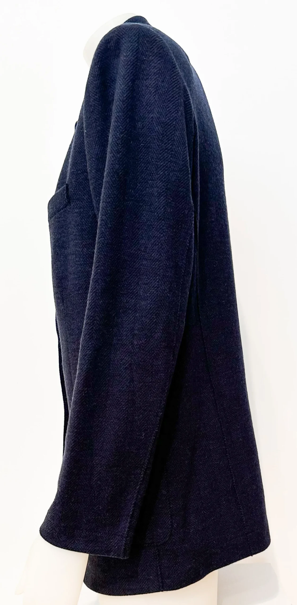 einreihig mit 2 KnöpfenReverskragen2 aufgesetzte TaschenungefüttertHerringbone Musterwie ein Strickblazer !Farbe Navy4…