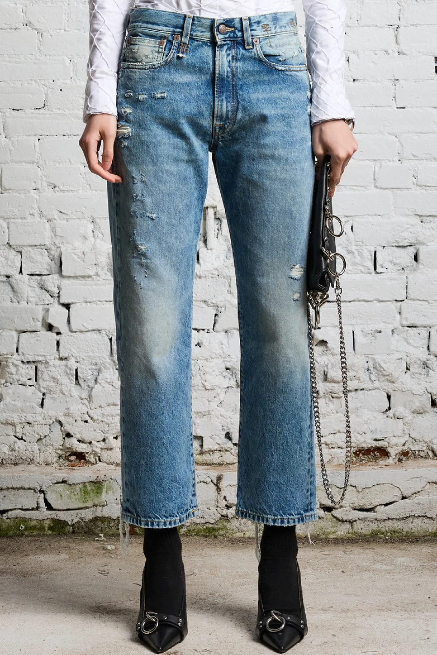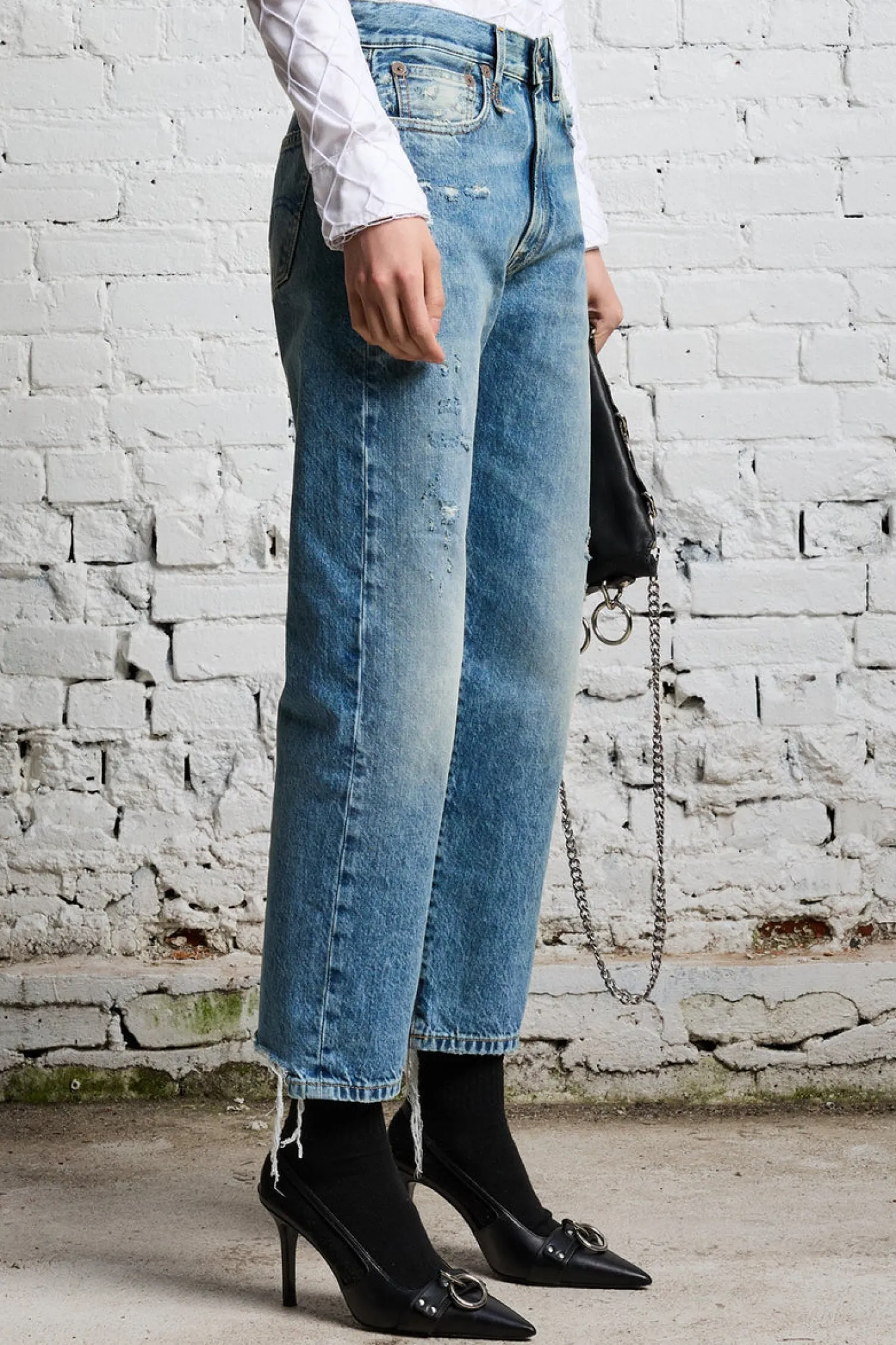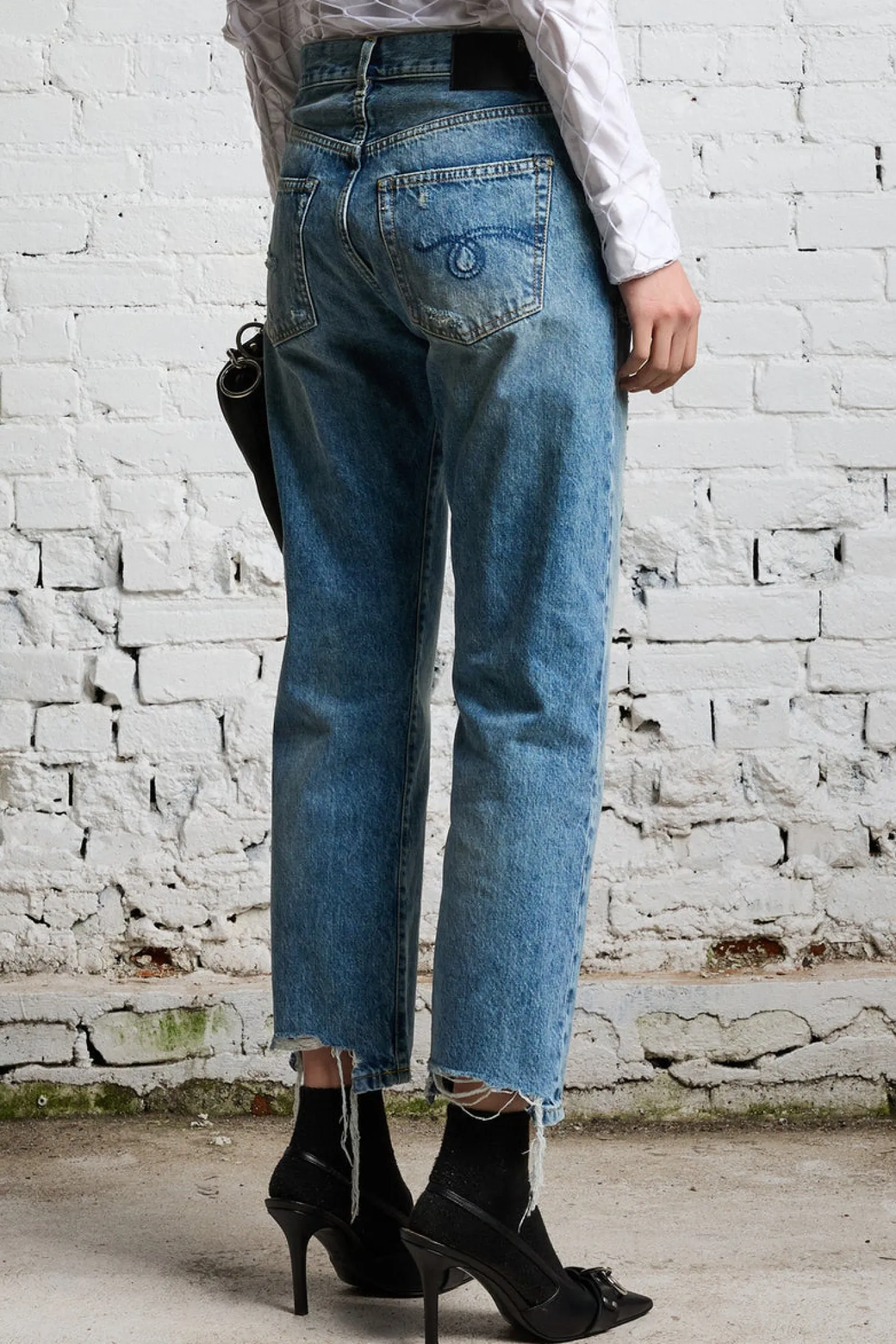 mittlere Leibhöherelaxed Fitgerades BeinRips am SaumRips, used Look100% BaumwolleWaschung Bain with Rips