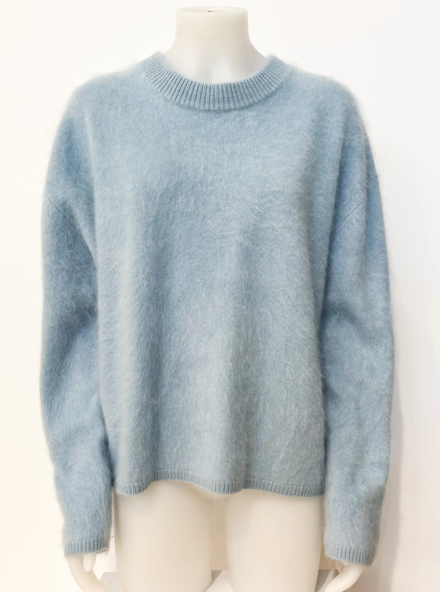 loose Fitüberschnittene SchulternRundhals AusschnittRipp Bündchensuper softFarbe Powder Blue100% Cashmere