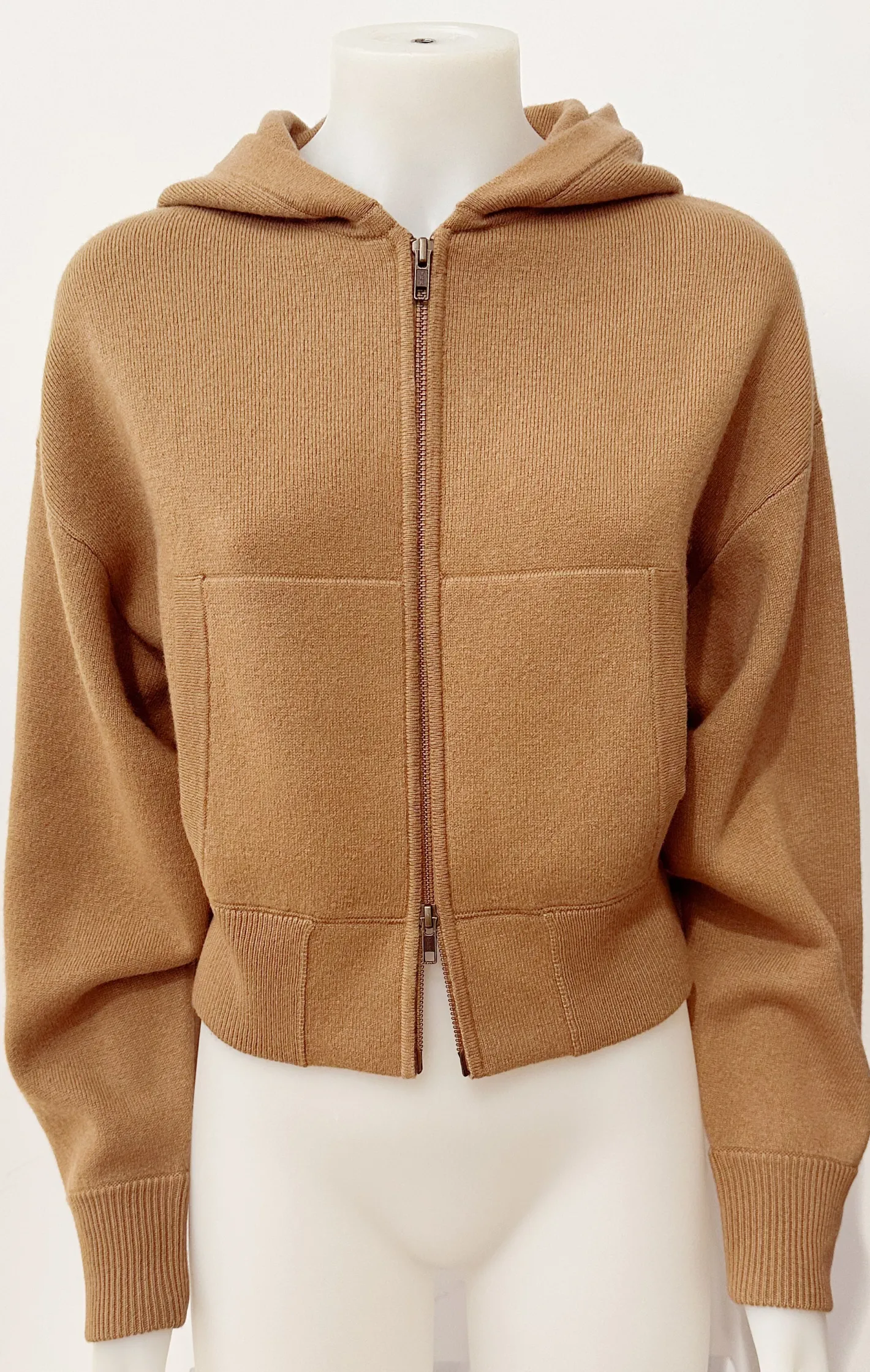 Hoodie Jackegerade, krz geschnittenReißverschlußseitliche EingriffstaschenFarbe Toffee100% Cashmere