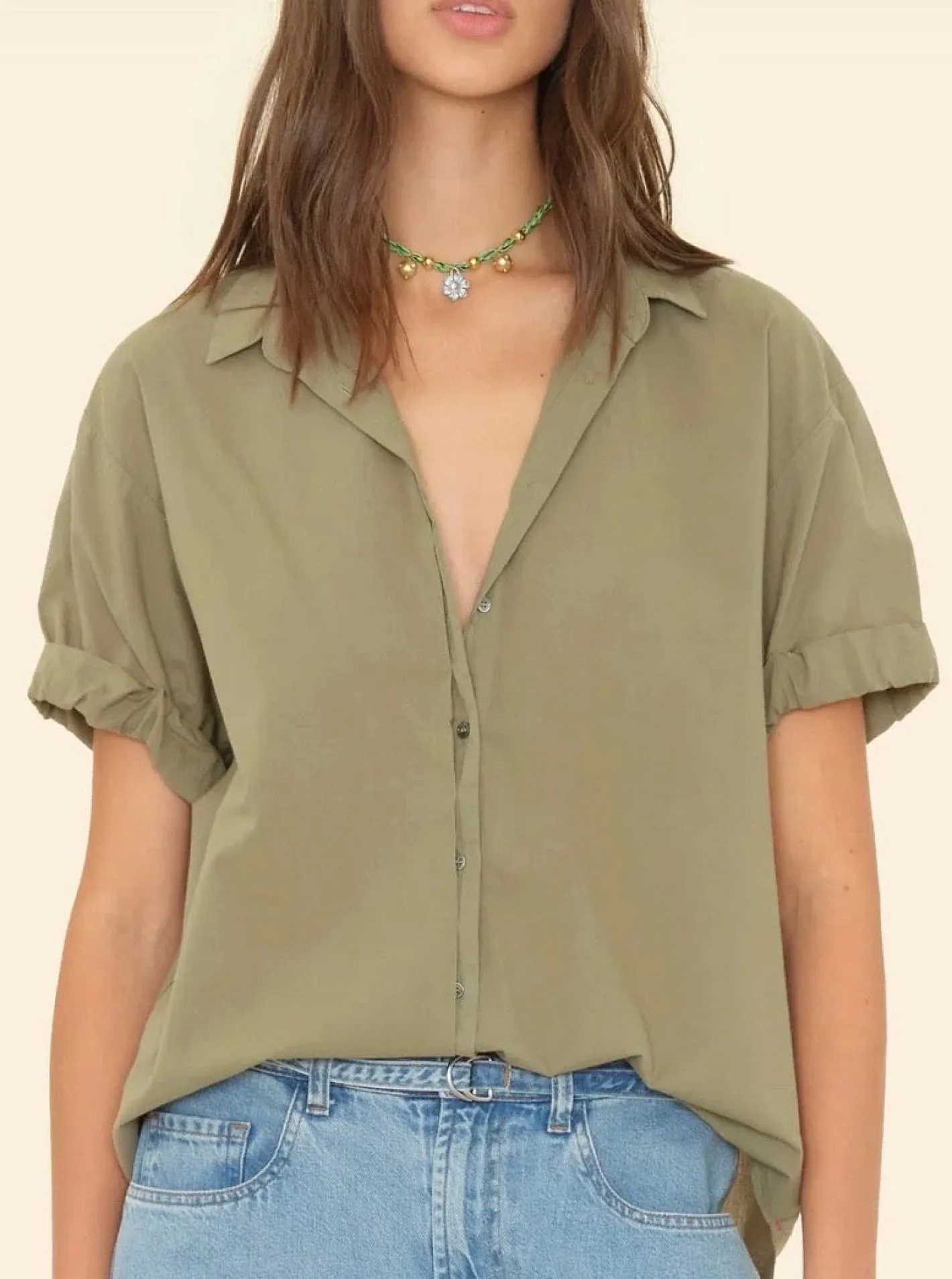 HemdbluseKrempelarmHermdblusenkragenabgerundeter Saumweicher Baumwoll PopelinFarbe Dark Seagrass100% Baumwolle