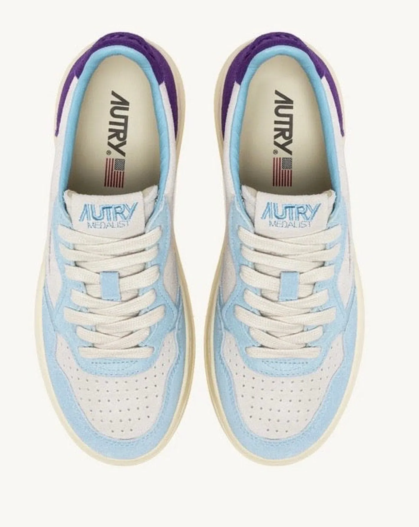 Neuer Kultsneaker von AUTRYSneaker in Hellblau/Mauve/HellgrauRunde Zehenkappeleichte Plateau-SohleZum SchnürenInnensohl…