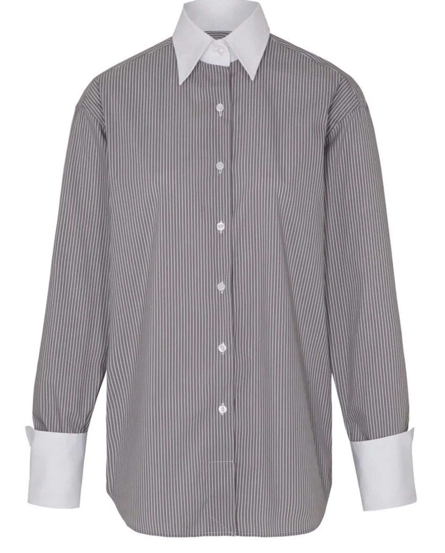 weißer abgesetzter Kragen und lange weiße Manschetten zum UmschlagenKnopfleiste leicht oversize geschnittenFarbe Grey…