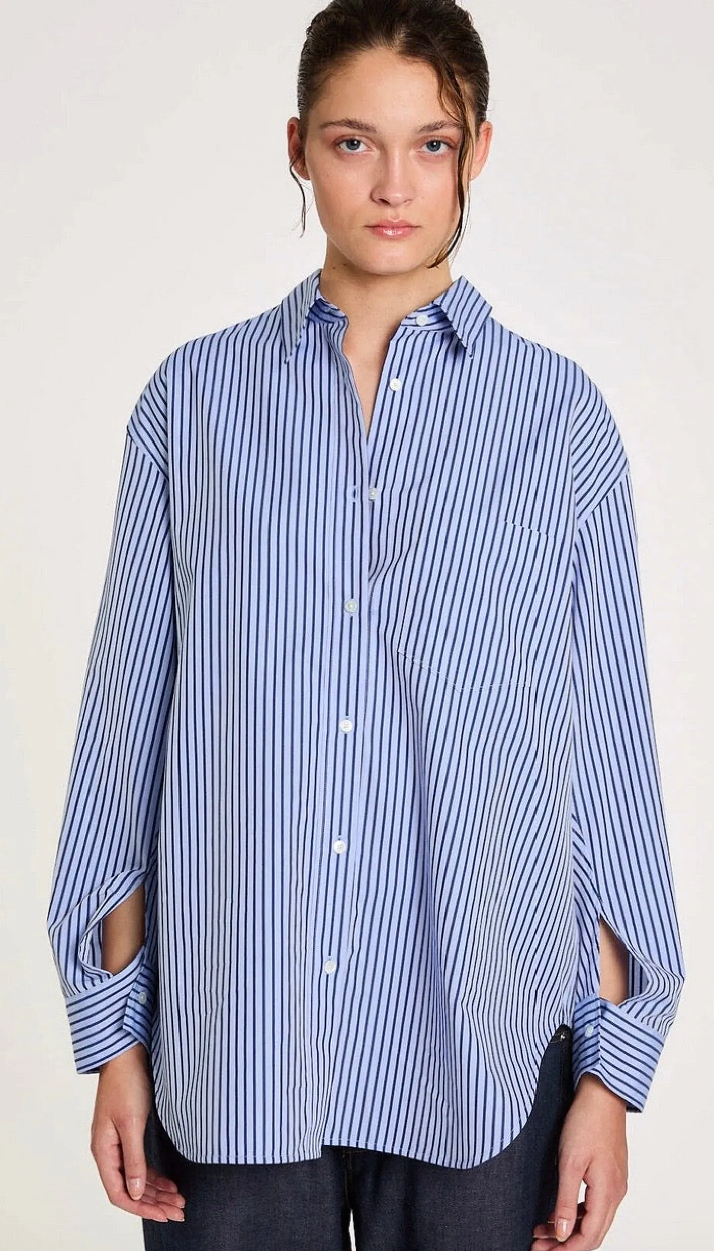 weites HemdhemdblusenkragenManschettenärmelabgerundeter Saum100% Baumwolle