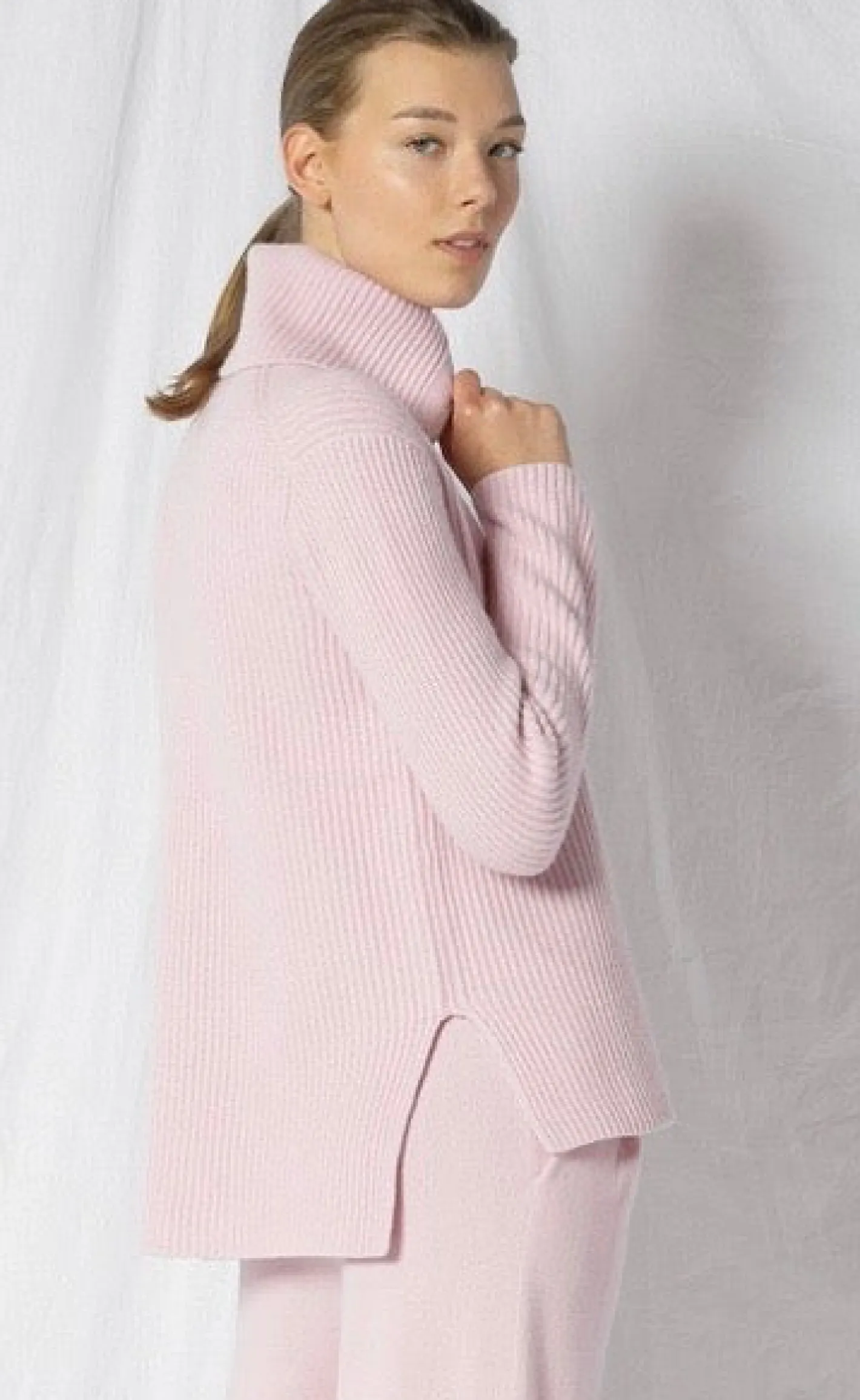 gerade geschnittenStehkragen mit ReißverschlußTroyerRippeFarbe Blossom57% Cashmere 43% Cashmere