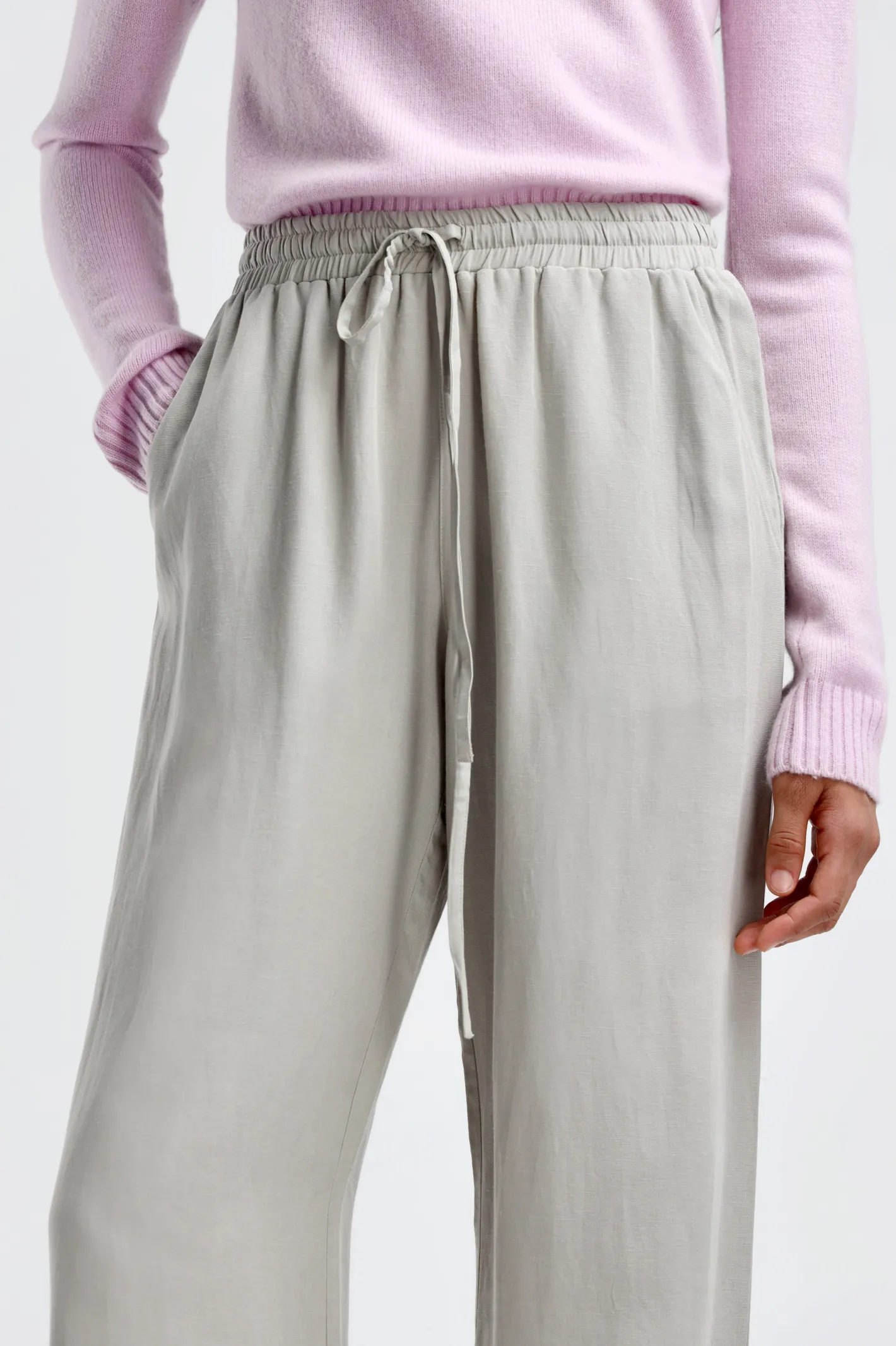 Hose Chambord Soft Linen in SageWeites, gerades BeinVerlängerter SchnittElastischer Taillenbund mit KordelzugSeitliche …
