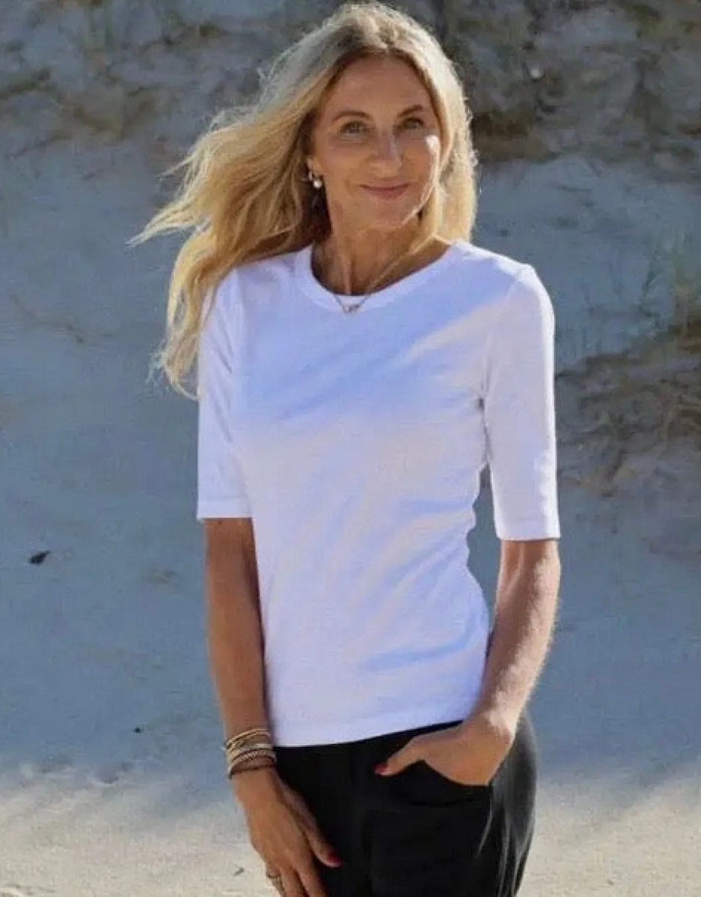 1/2 Arm ShirtRundhals Ausschnittsofter GriffRipp JerseyFarbe Weiß100% Baumwolle