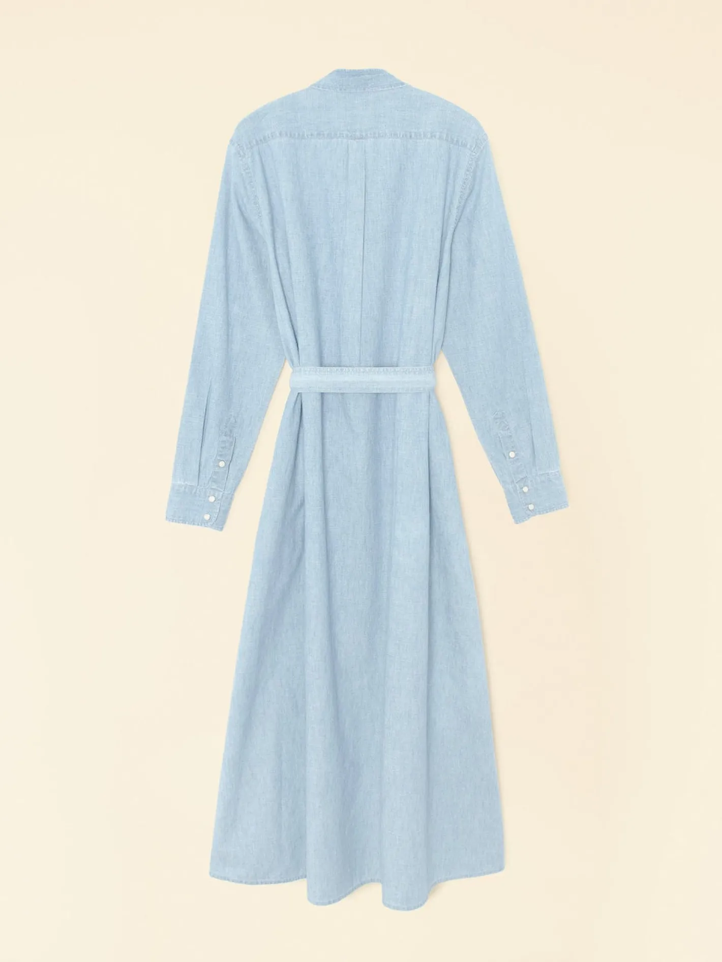 MaxikleiddurchgeknöpftHemdblusenkragenmit Bindegürtelweicher Baumwoll ChambrayFarbe Dusty Blue100% Baumwolle