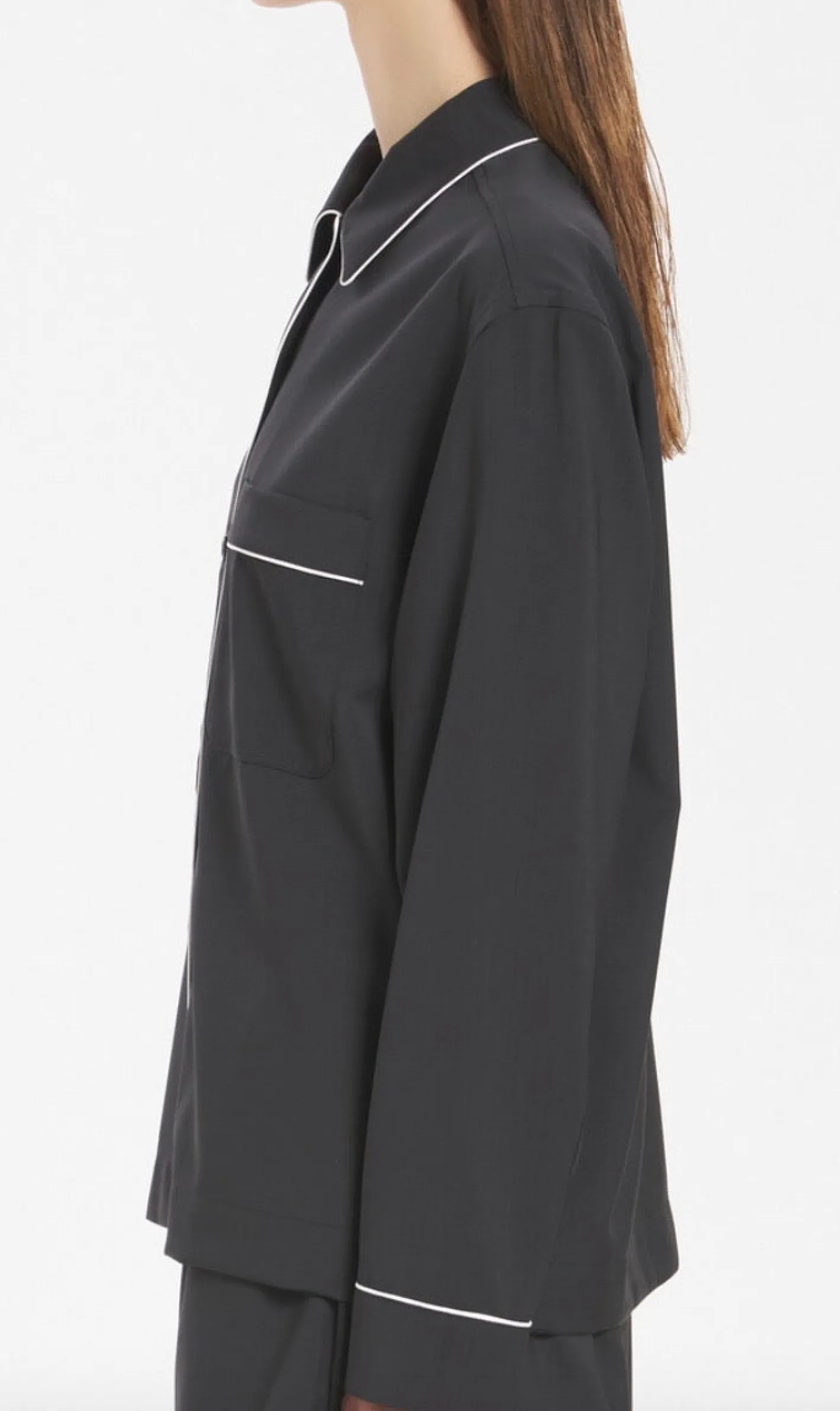 Bluse im Pyjama Styleabgesetzte, weiße PaspeldurchgeknöpftHemdkrageneine aufgesetzte BrusttascheManschettenFarbe Navy1…