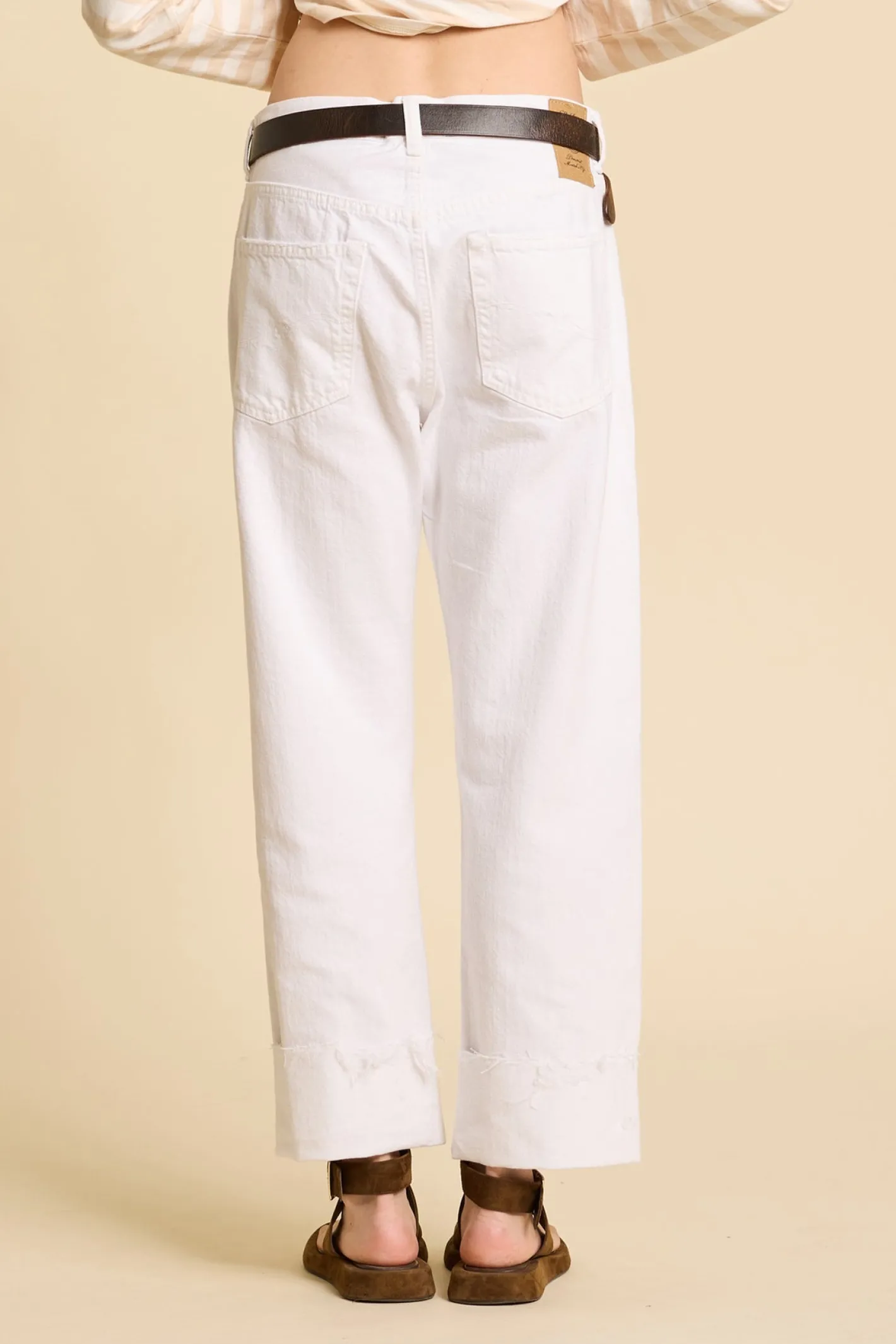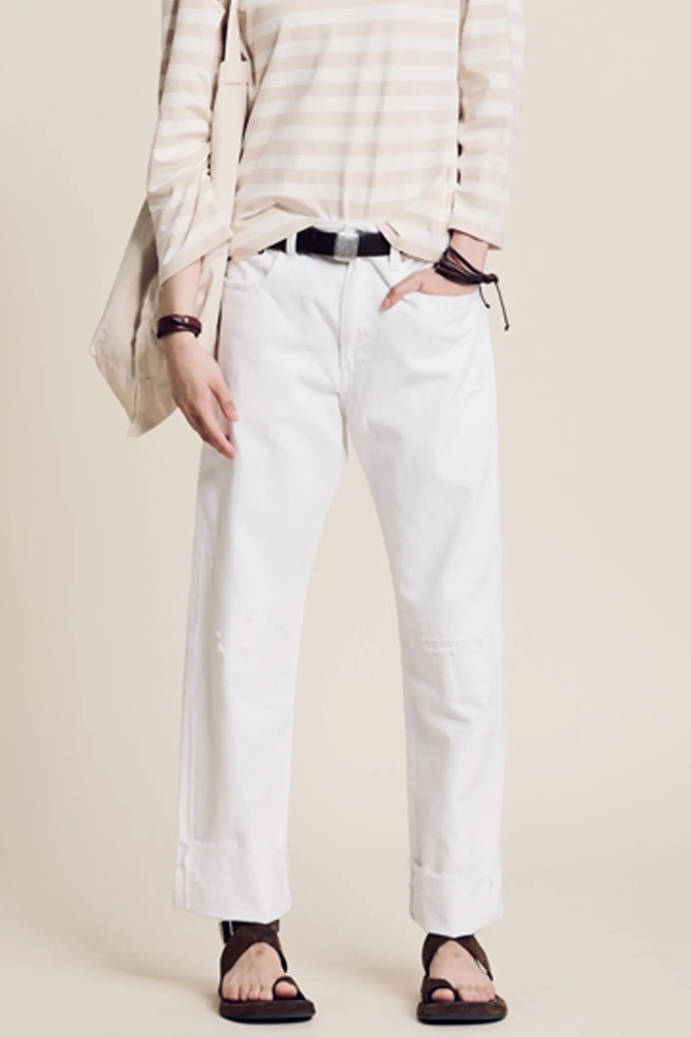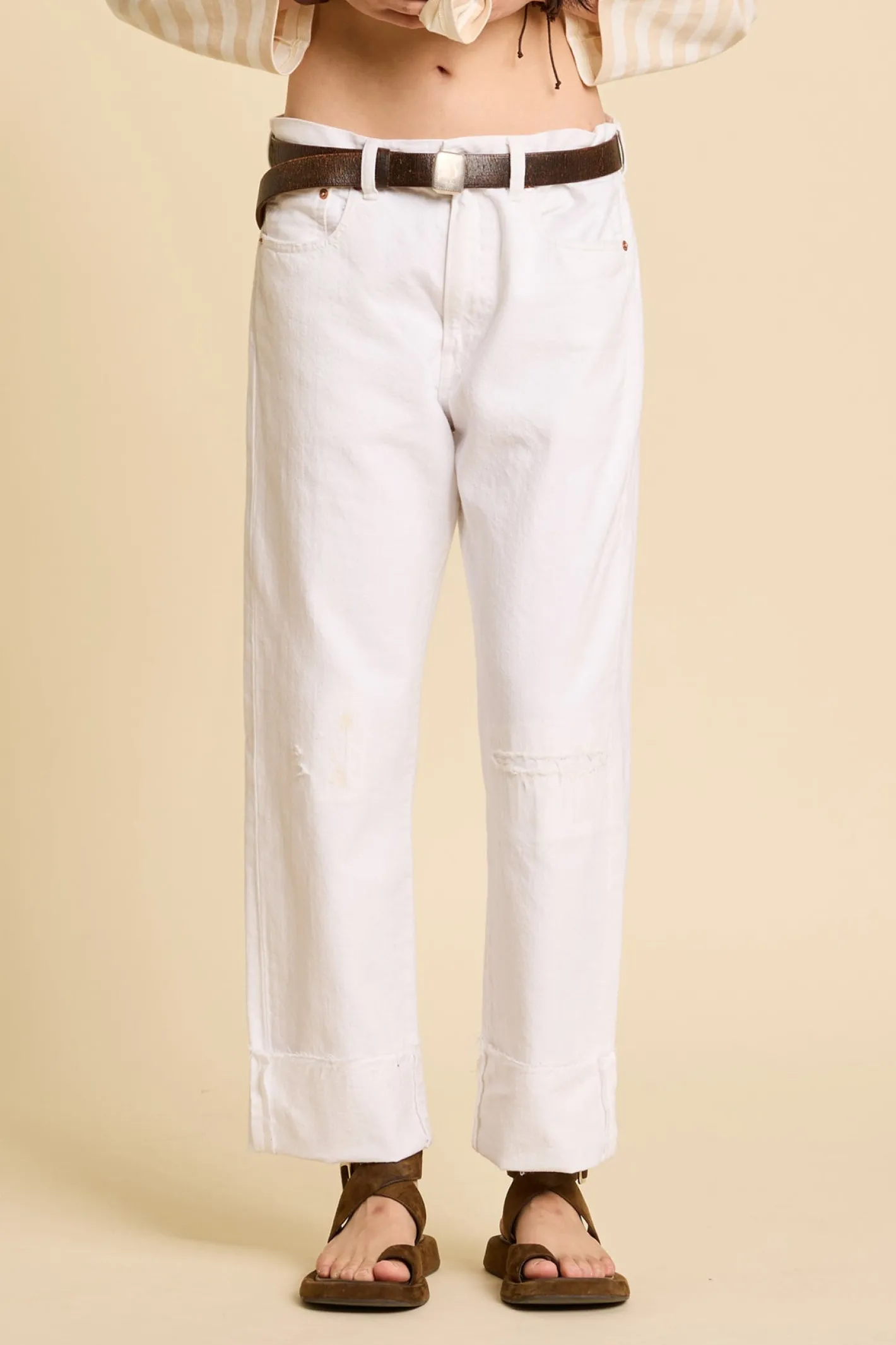 lässige FormBoyfriend StyleRips am Oberschenkelhöhere TailleFarbe White100% Baumwolle