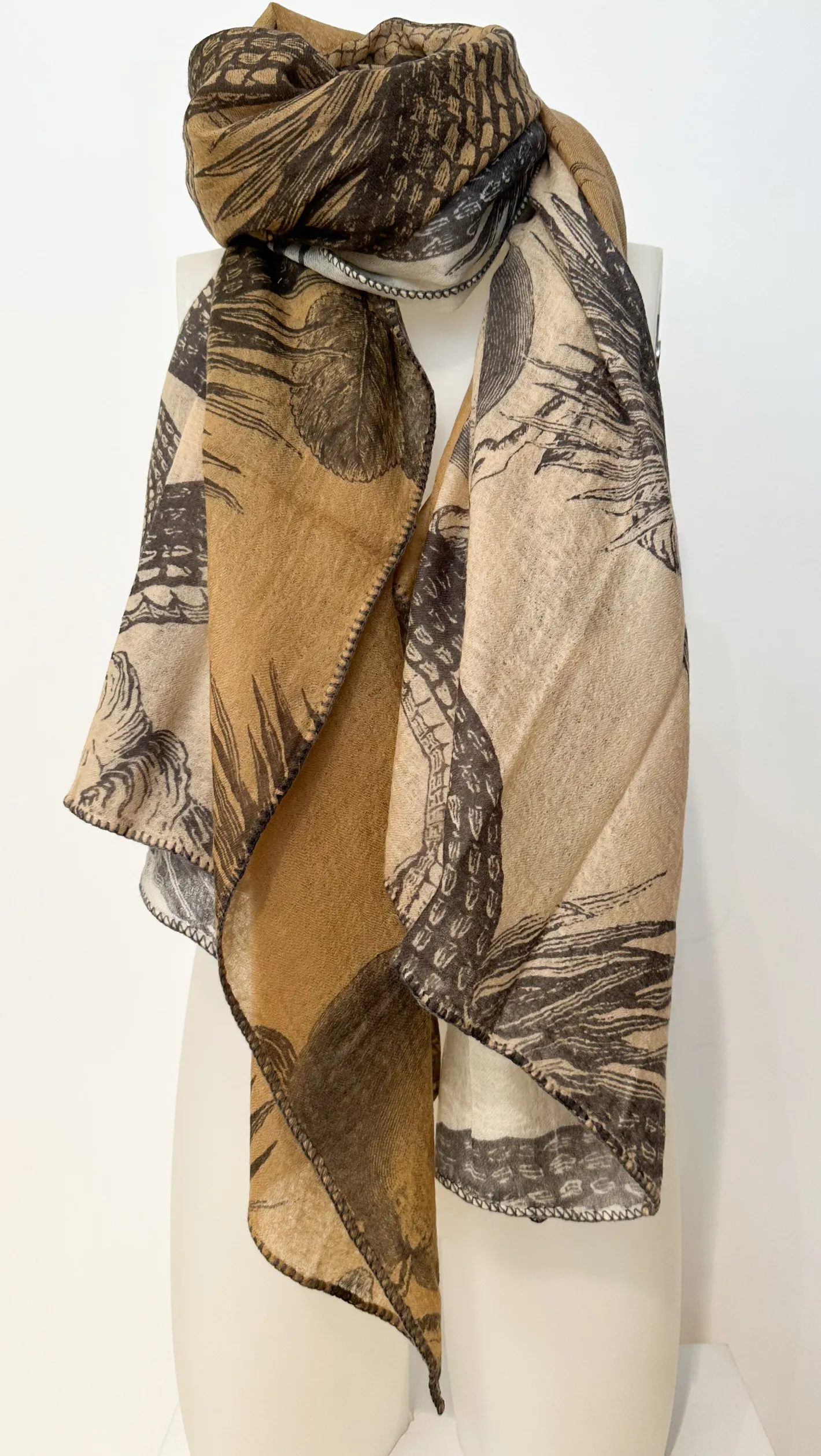Der friendly hunting Scarf Patch wird per Hand in der Manufaktur in Nepal aus 100% Cashmere in drei einzelne Teile gewebt und anschließend gefilzt. Seine dichte Struktur mildert die Empfindlichkeit dieses fragilen Materials. Die Einzelstücke werden anschließend individuell gefärbt und Ihre Prints im Handsiebdruck platziert. Zuletzt werden sowohl die drei Teile zu einem Schal als auch die Außenränder zur Verzierung gehäkelt.