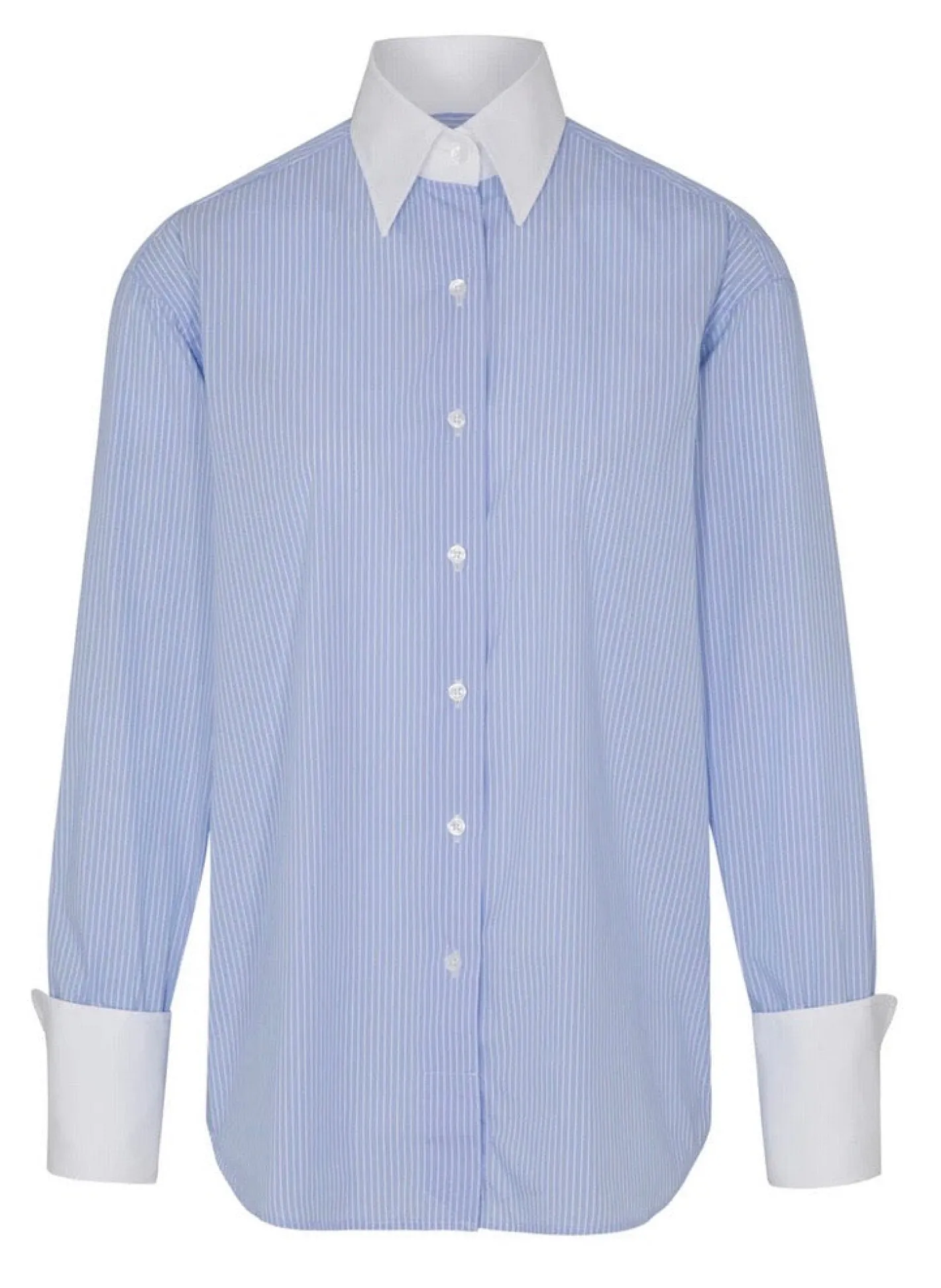 weißer abgesetzter Kragen und lange weiße Manschetten zum UmschlagenKnopfleiste leicht oversize geschnittenFarbe Blue…