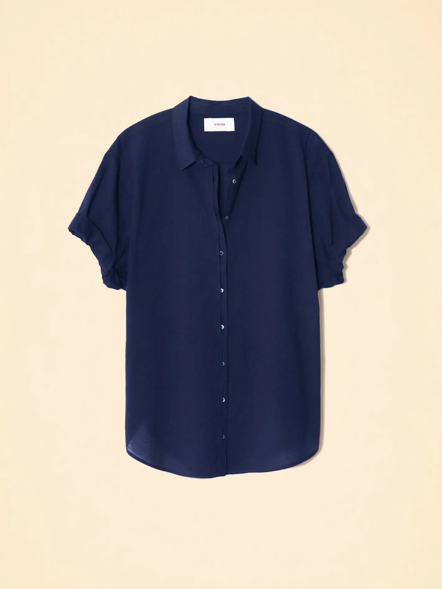 HemdbluseKrempelarmHermdblusenkragenabgerundeter Saumweicher Baumwoll PopelinFarbe Navy100% Baumwolle