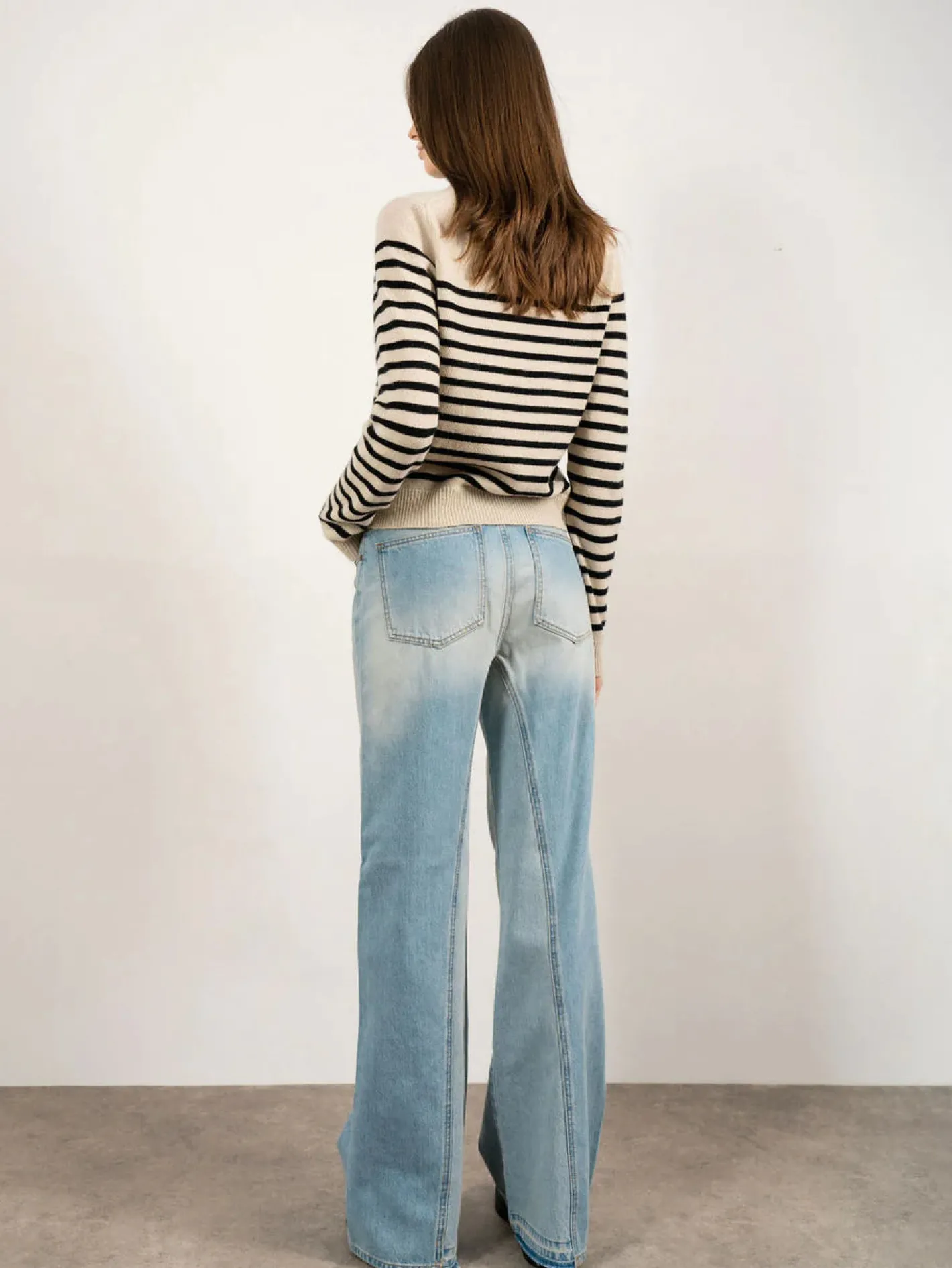 Rundhals Ausschnittgerade geschnittenRipp BündchenFarbe Buttermilk/Night70% Ultrafine Merino Wolle 30% Cashmere
