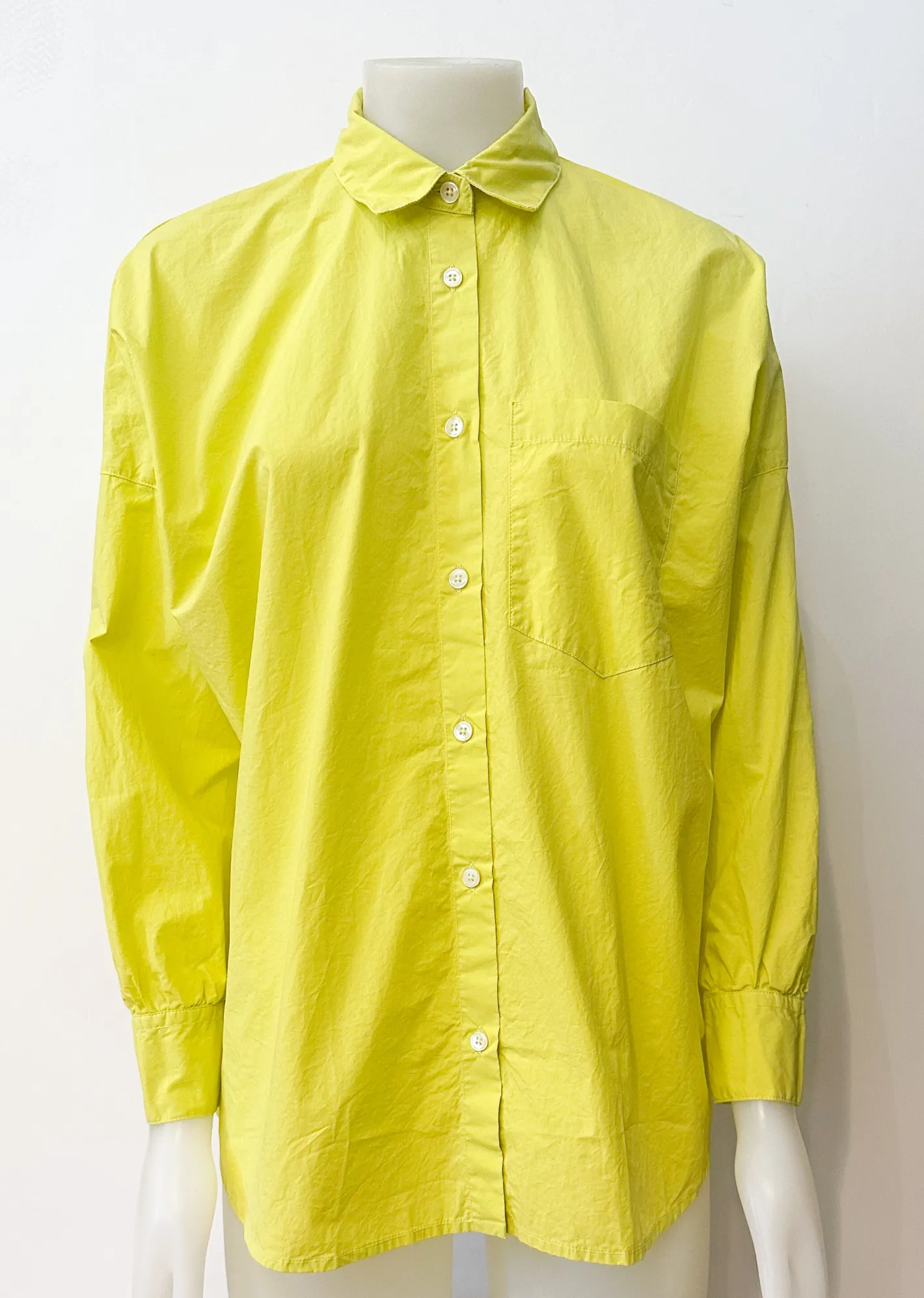 leicht oversize geschnittenHemdblusenkragenüberschnittene SchulterManschettenärmelKnopfleisteeine BrusttascheFarbe Lim…
