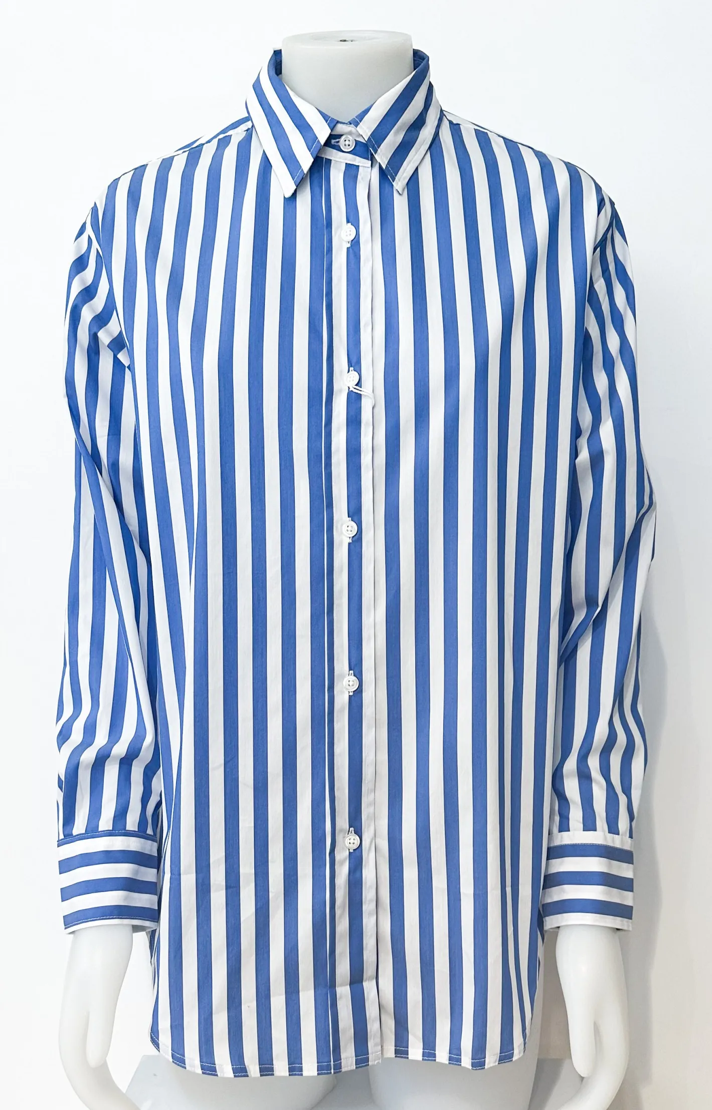 gerade geschnittenHemdblusenkragenManschettenärmelKnopfleisteabgerundeter SaumStripes Blau Weiß75% Baumwolle 22% Polya…