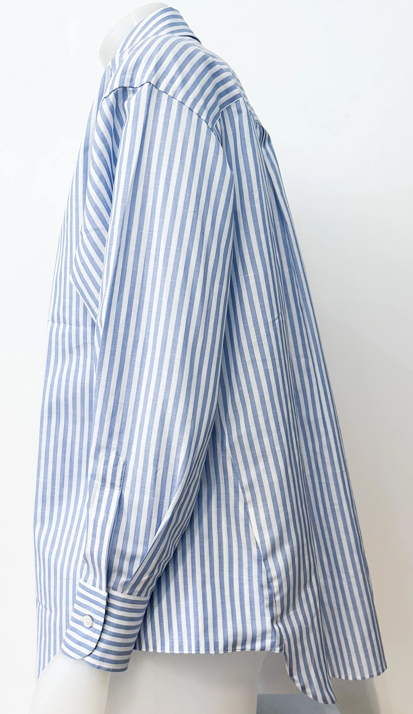 weites Hemdnach unten leicht ausgestellthinten längerHemdblusenkragenManschettenärmelKnopfleisteFarben Blau Weiß66% B…