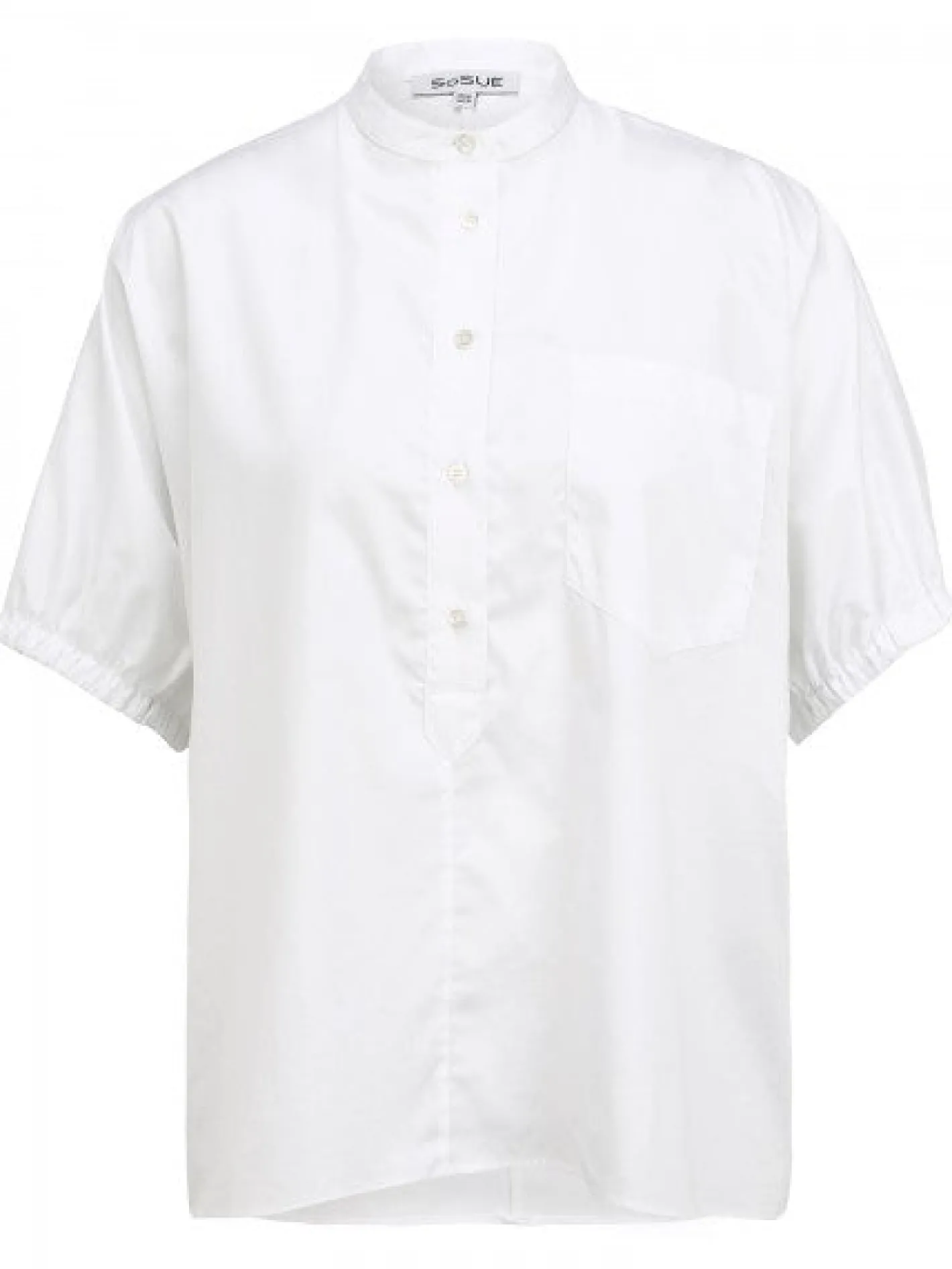Sommerliche, moderne Bluse mit Knopfleiste und kleinem Stehkragen. Die Bluse ist oversize geschnitten und ein Basic für…