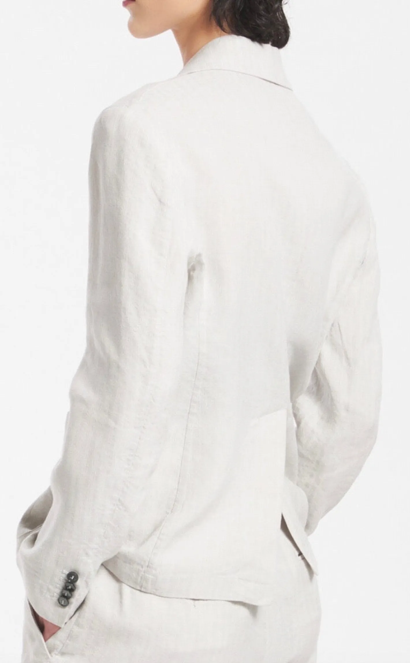 leicht tailliertaufgesetzte TaschenReverskragenRückteil mit SchlitzFischgrätFarbe Silber/Kalk52% Viskose 48% Leinen