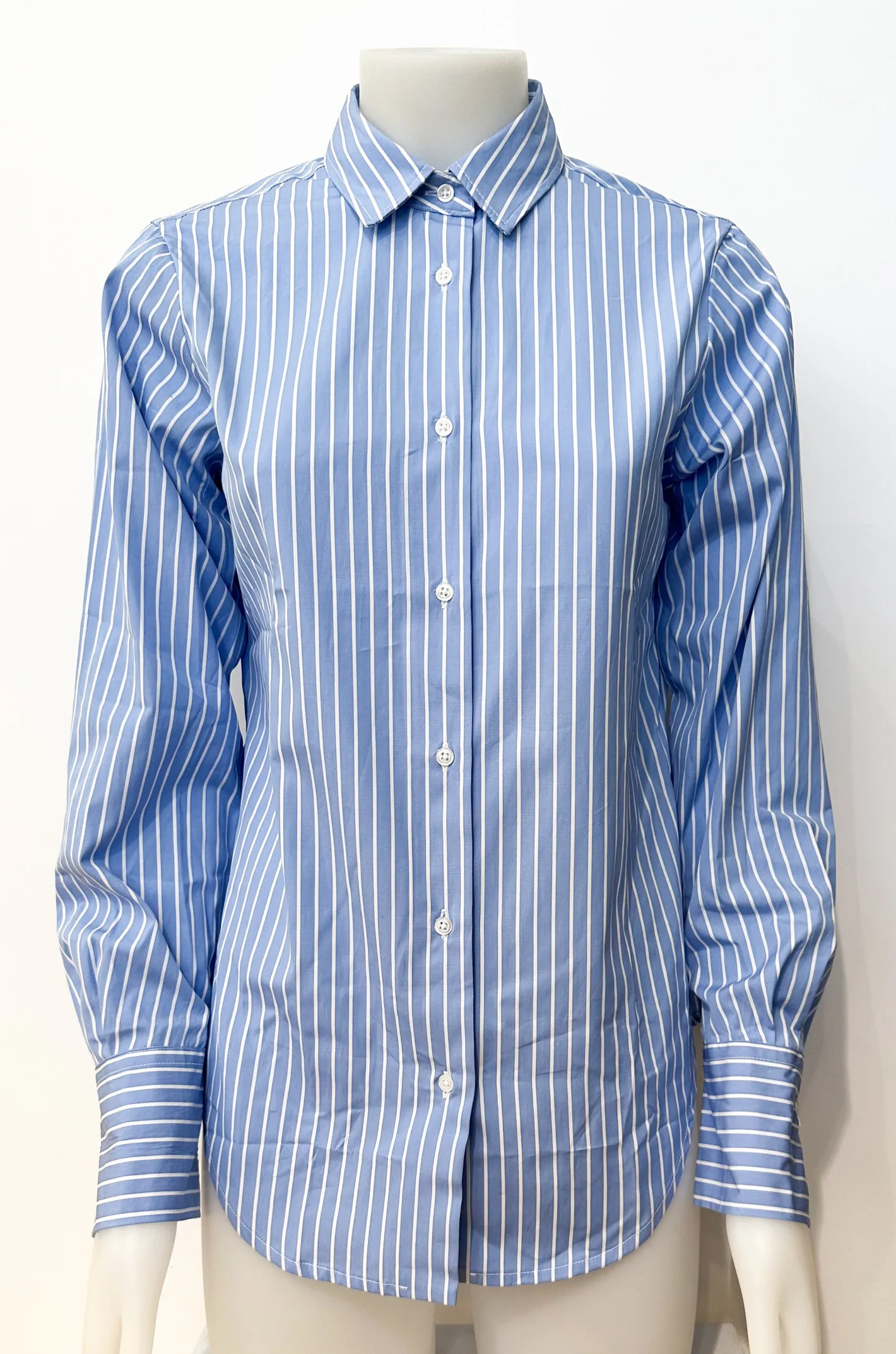 gerade geschnittenHemdblusenkragenManschettenärmelabgerundeter SaumKellerfalte hintenModell 49004 StreifenFarbe Blau We…