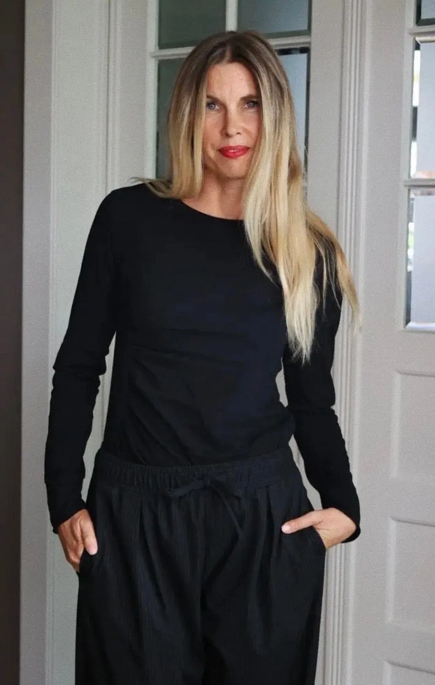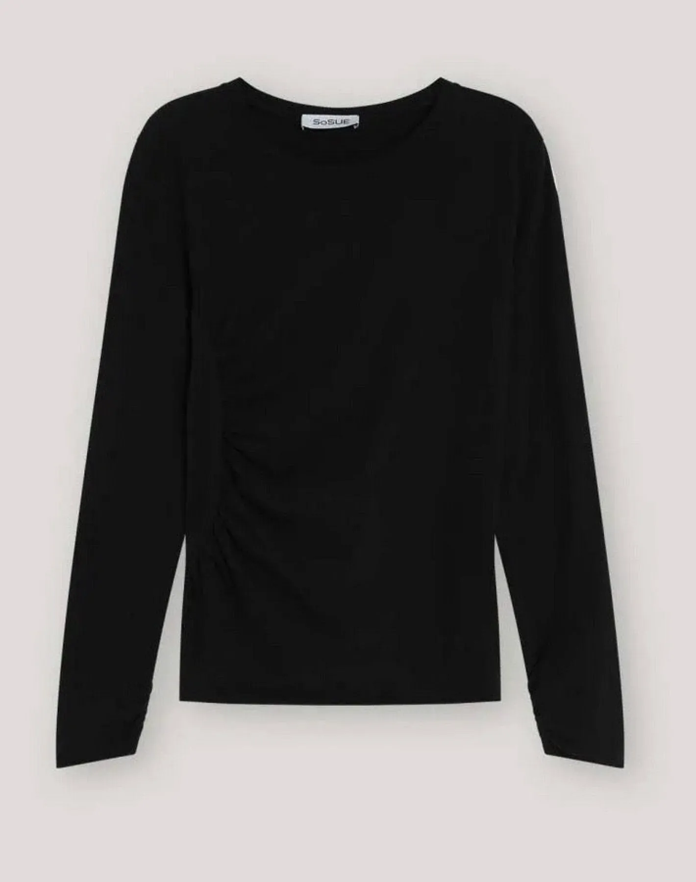 Damenshirt in SchwarzLangarmshirt DamenLange ÄrmelRundhalsausschnittTaillierter SchnittWeiche Haptik100 % BaumwolleFarb…