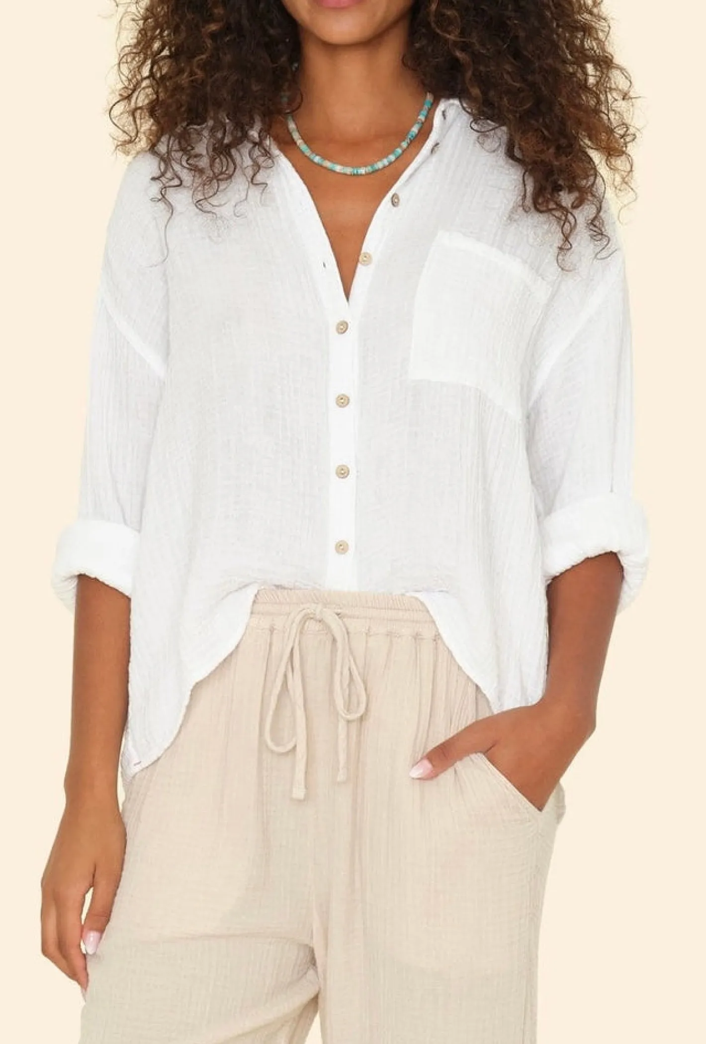 gewaschene doppelseitige Baumwoll Gazegecrinkelte Optikloose FitKnopfleisteeine BrusttascheManschettenHemdblusenkragenFa…