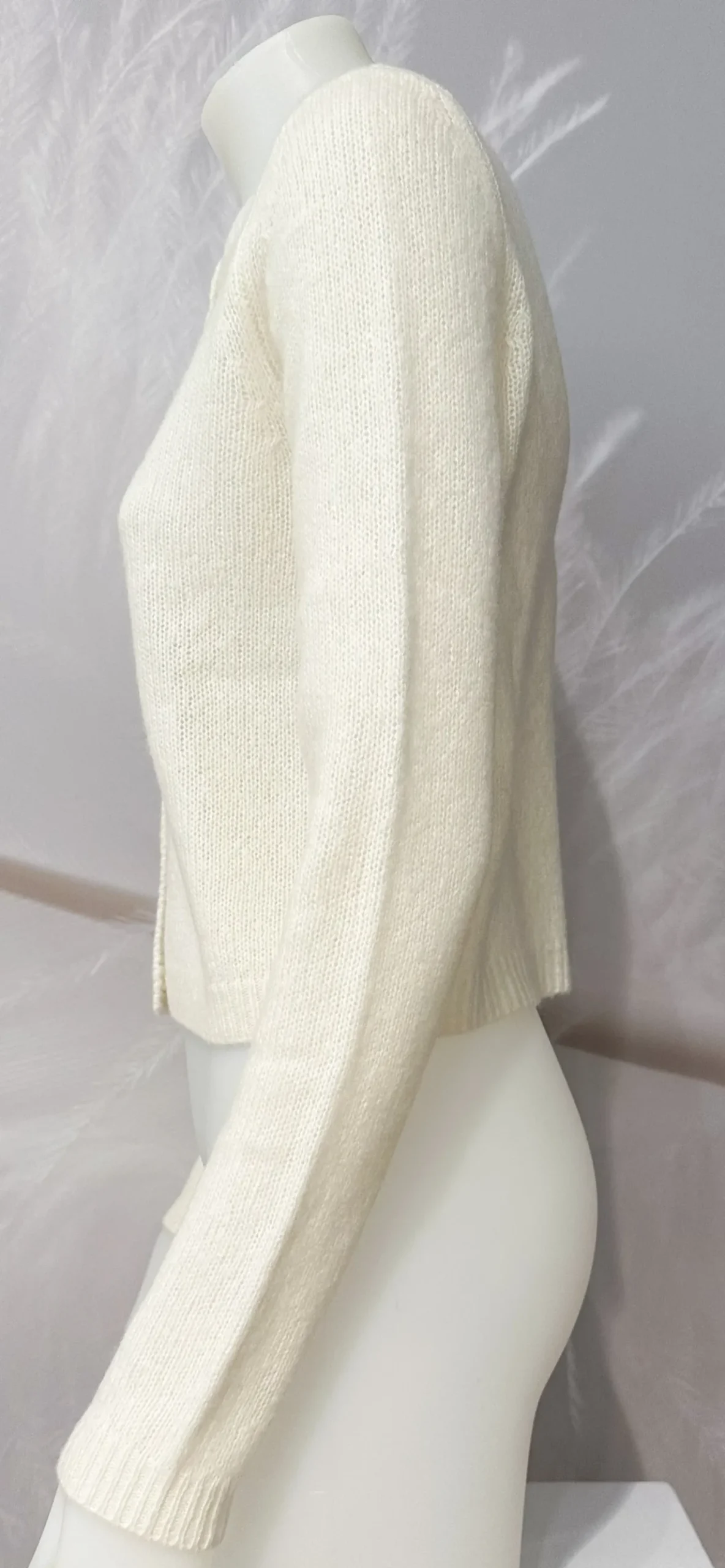 kurz,schmal geschnittenRipp BündchenRundhals AusschnittKnopfleisteFarbe Cream77% Cashmere 23% Seide