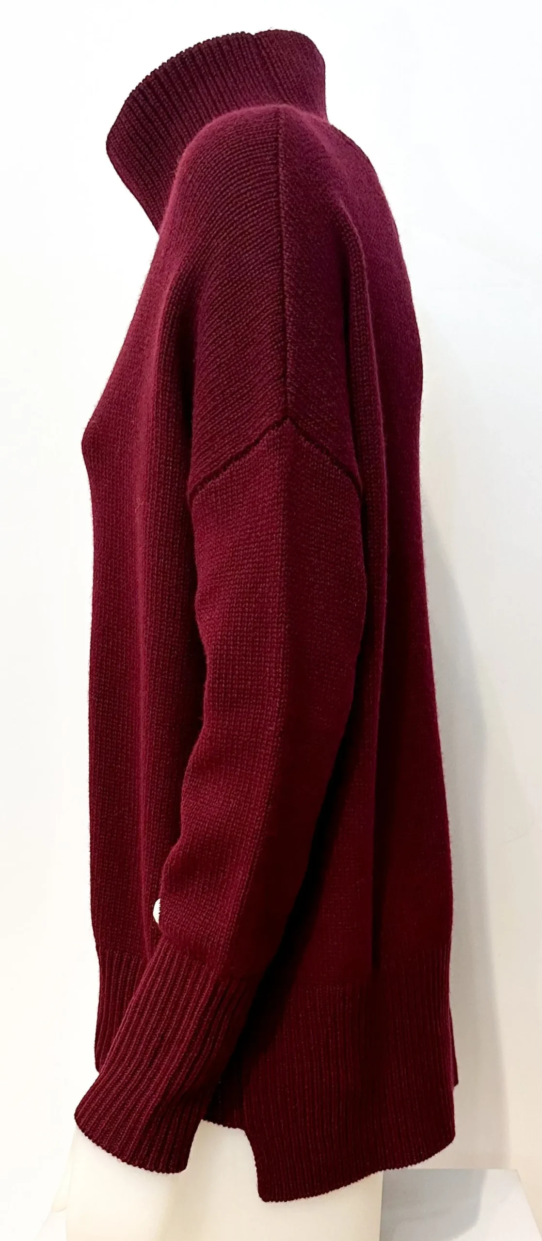 Feinstrick mit RippstrickGerader SchnittRollkragenÜberschnittene SchulternVerlängerte RückenpartieRippbündchen an Ä…