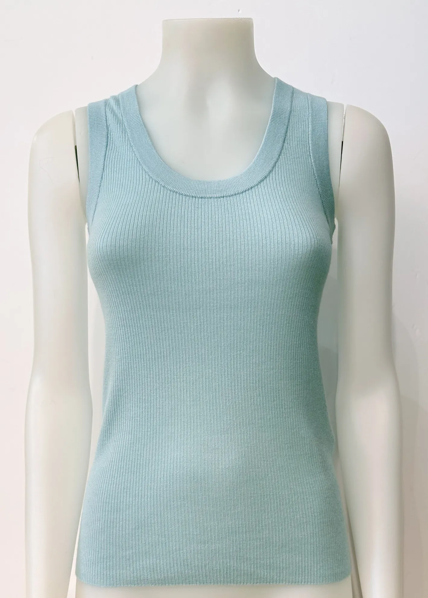 RipptopRundhals Ausschnittschmal geschnittenbreite TrägerFarbe Flieder100% Cashmere