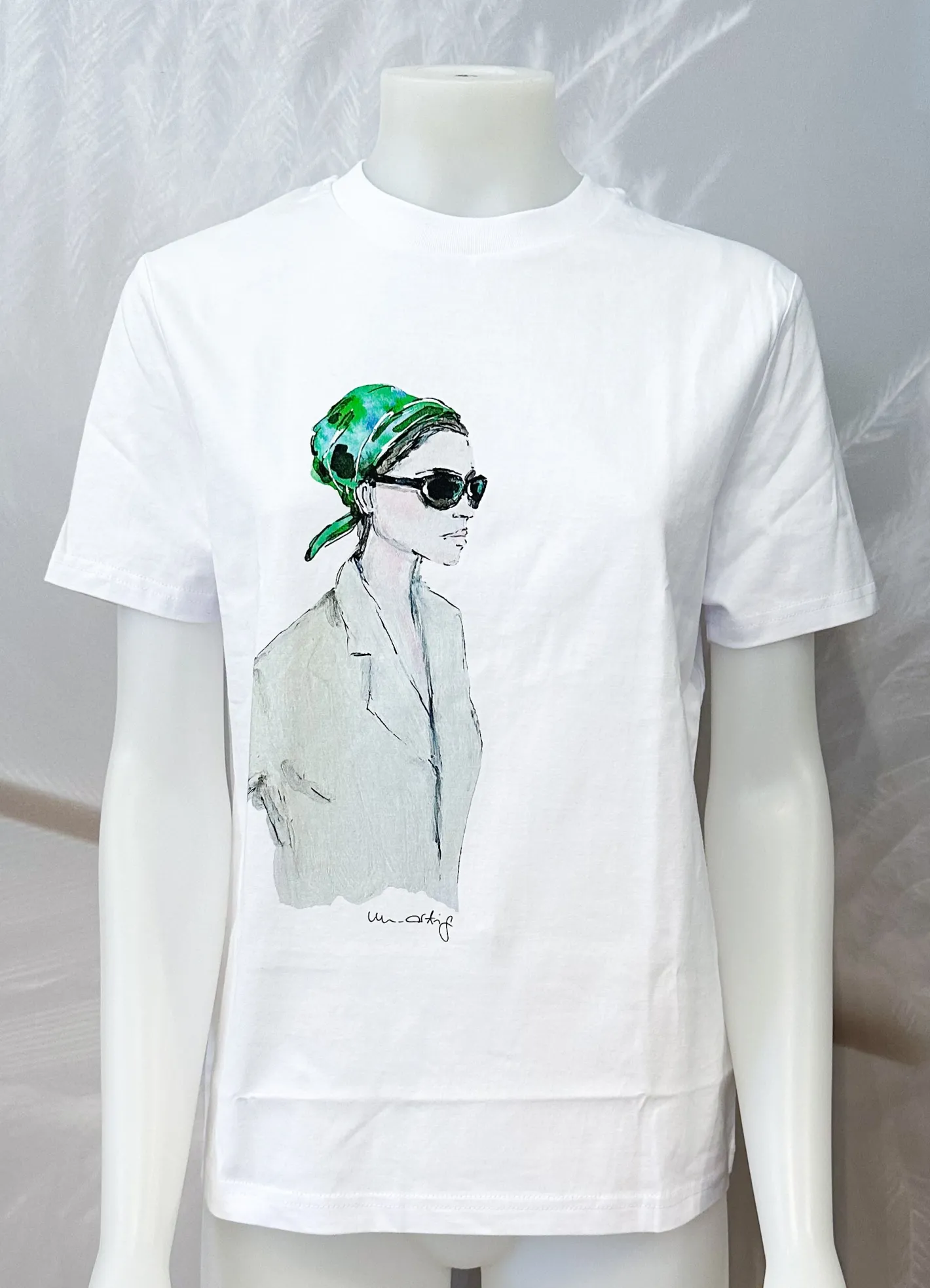 T-Shirt gerade geschnittenRundhals AusschnittMotiv Grünes Tuch100% Baumwolle