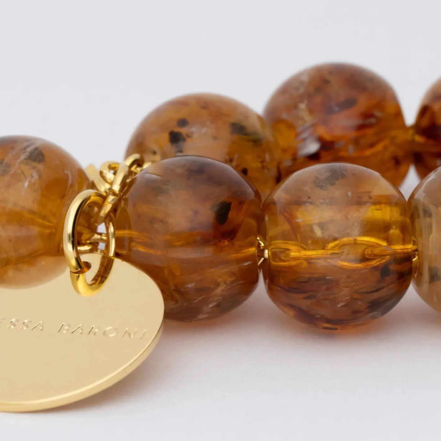 Die Small Beads Necklace Short in der Variante Bordeaux Marble – diese Halskette ist mehr als nur ein Schmuckstück. Mit ihrem eleganten Look verkörpert sie atemberaubende Schönheit und maximale Ästhetik für jedes deiner Outfits. Die runden und federleichten Acetat-Elemente schmiegen sich sanft um den Hals, für perfekten Tragekomfort. Ein einzigartiges Statement-Piece, dass dir bei jedem Anlass das Gefühl von Glamour und Anmut verleiht.