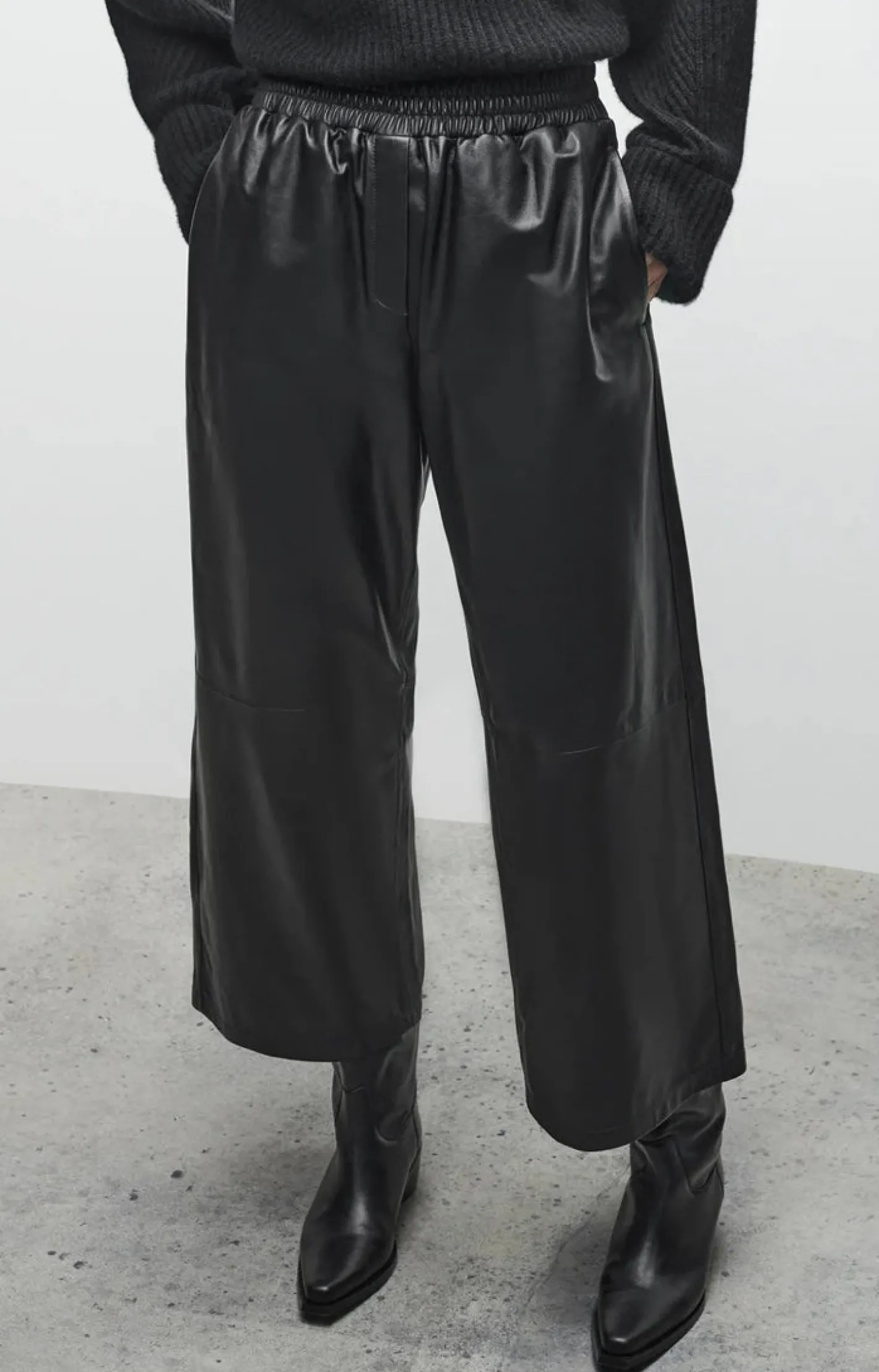 culotte Formweites, verkürztes Beinmittlere Leibhöheelastischer Bundseitliche EingriffstaschenFarbe SchwarzLamm Nappa