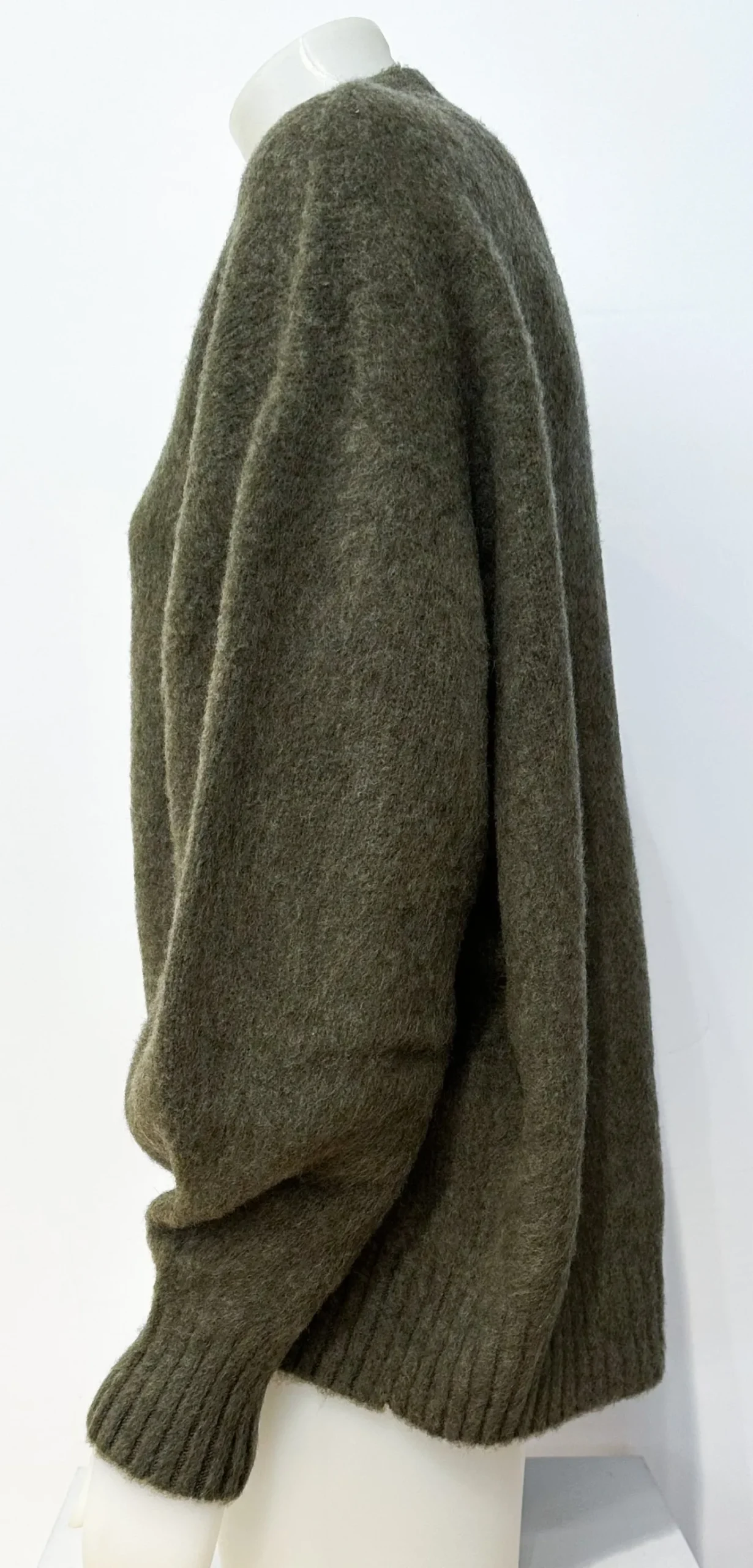 leicht oversize geschnitten, wie ein Sweaterhoher Rundhals AusschnittRipp Bündchenblusiger ÄrmelFarbe Oliv70% Extrafin…